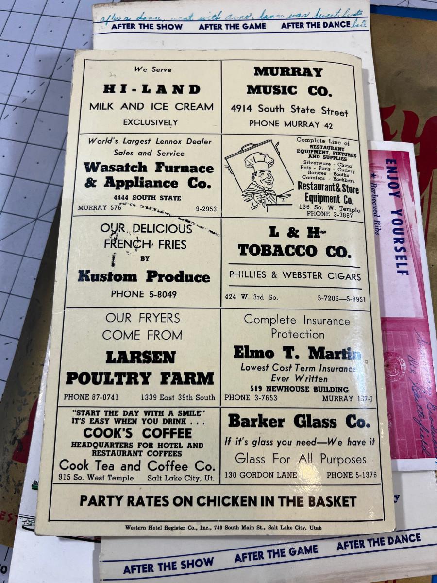 GREAT Collection of Salt Lake City Menus Circa 1950's