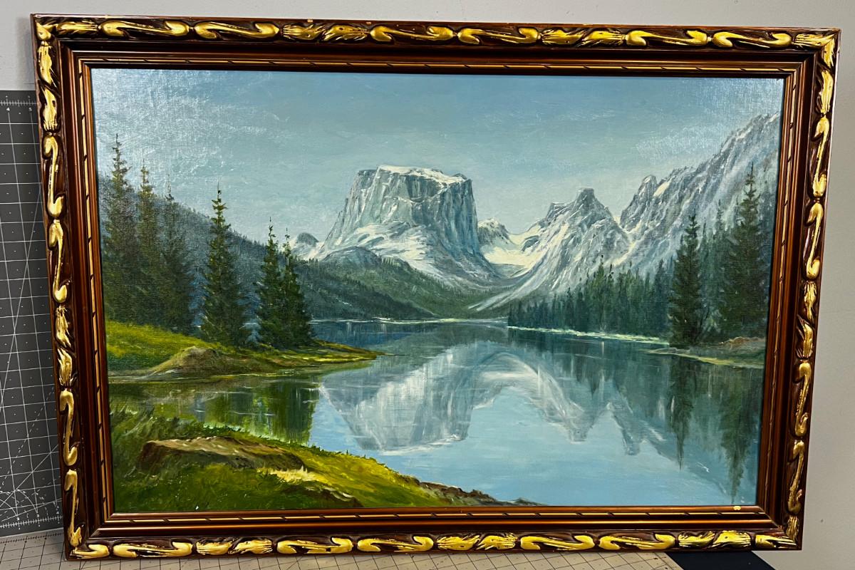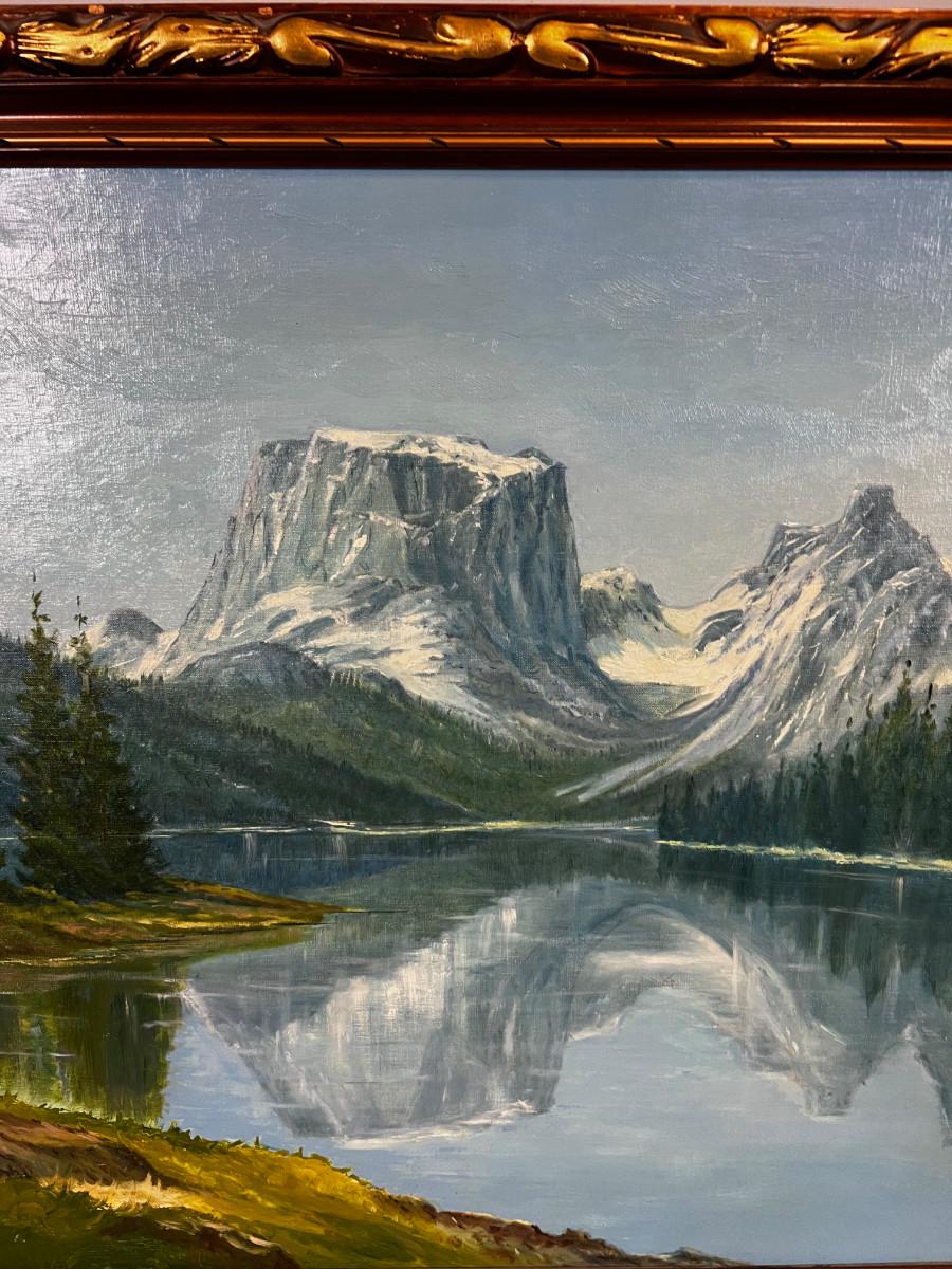 Great Mountain Lake Scene Wyoming Frederick Luckau Oil