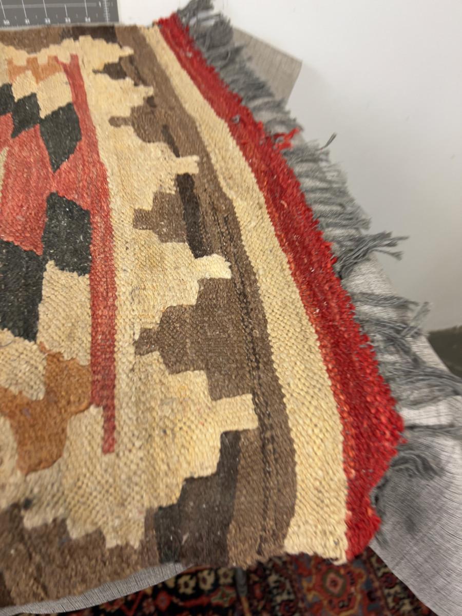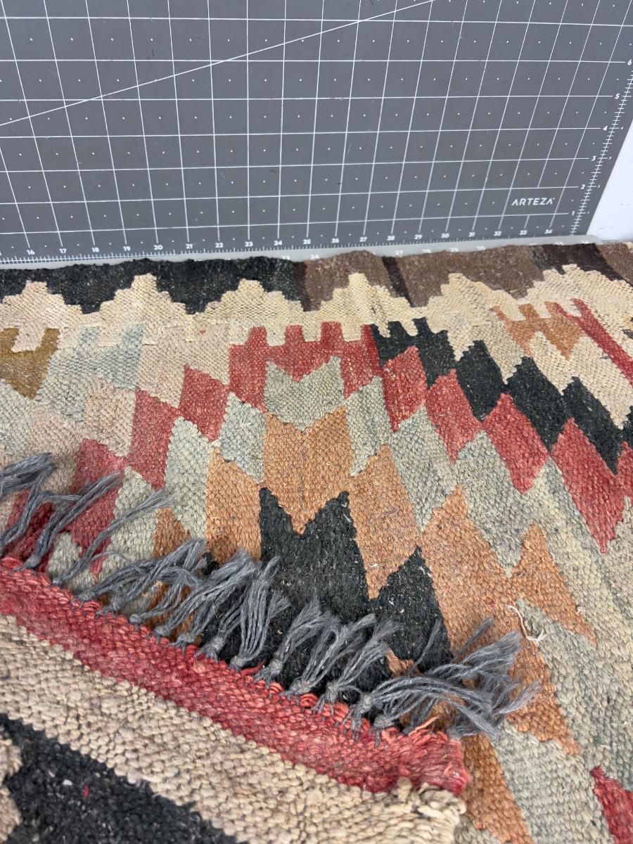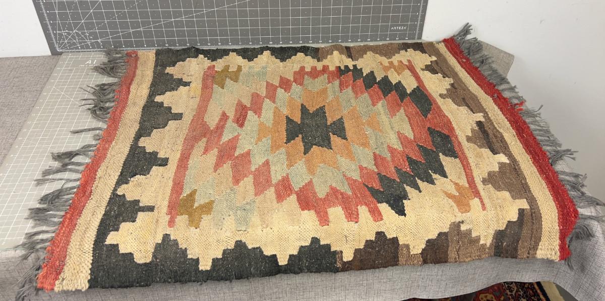Used. Shows Wear 34 x 28" AWESOME Colors. It has been used and walked on. Still neat! Good Condition. But used.