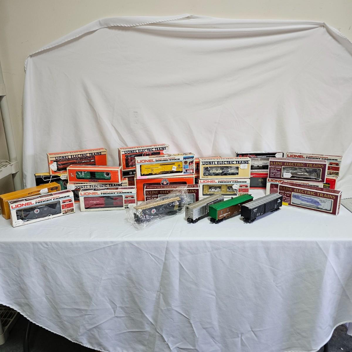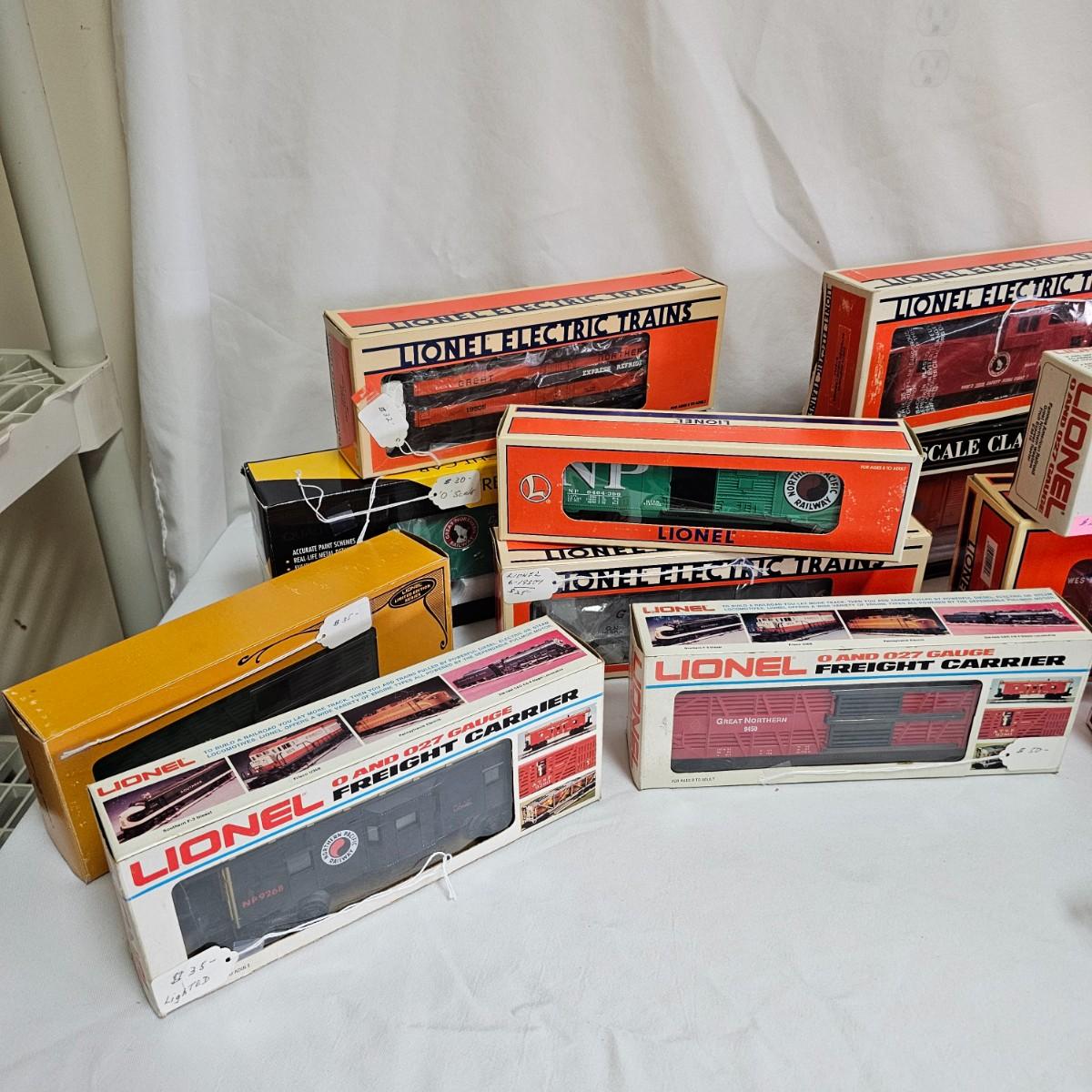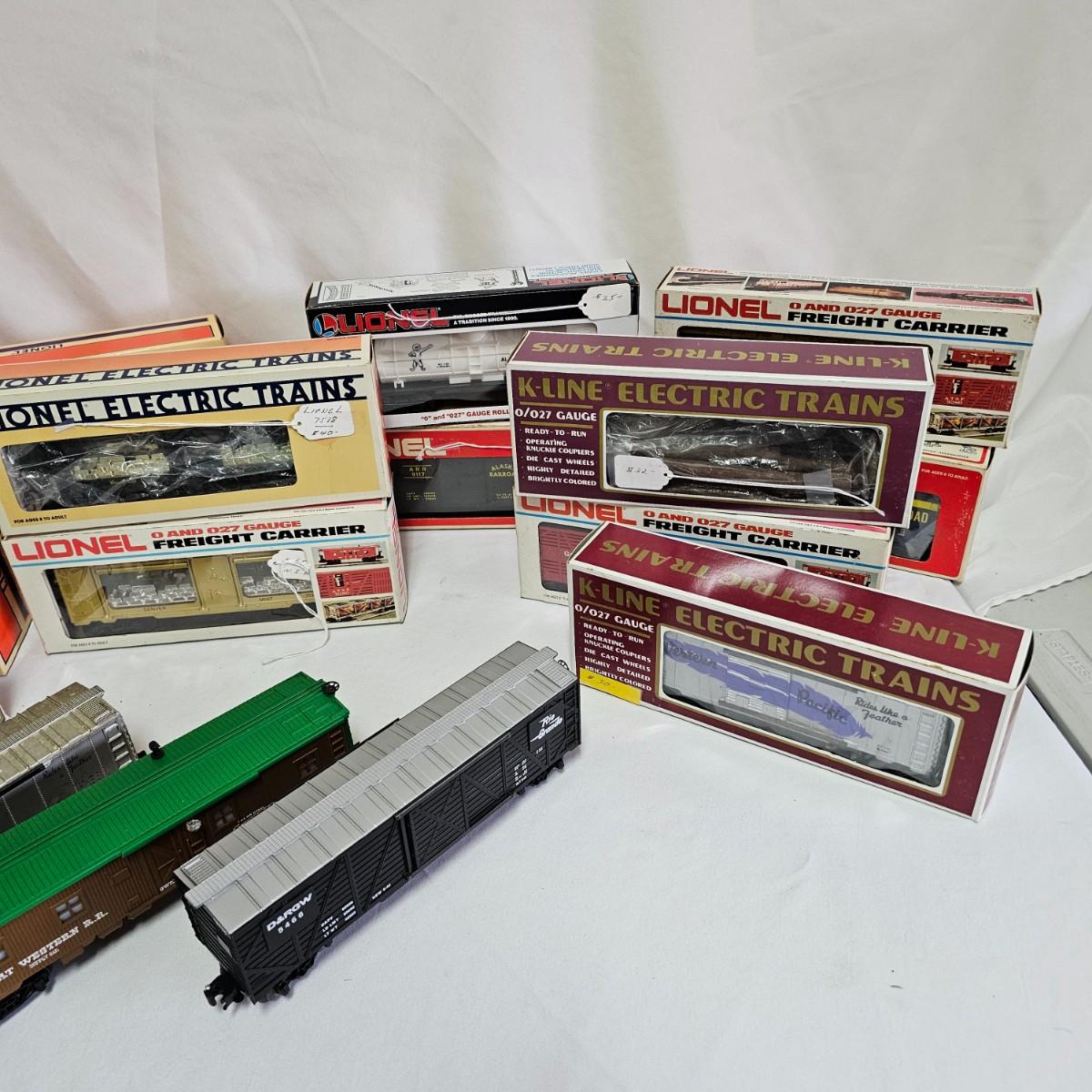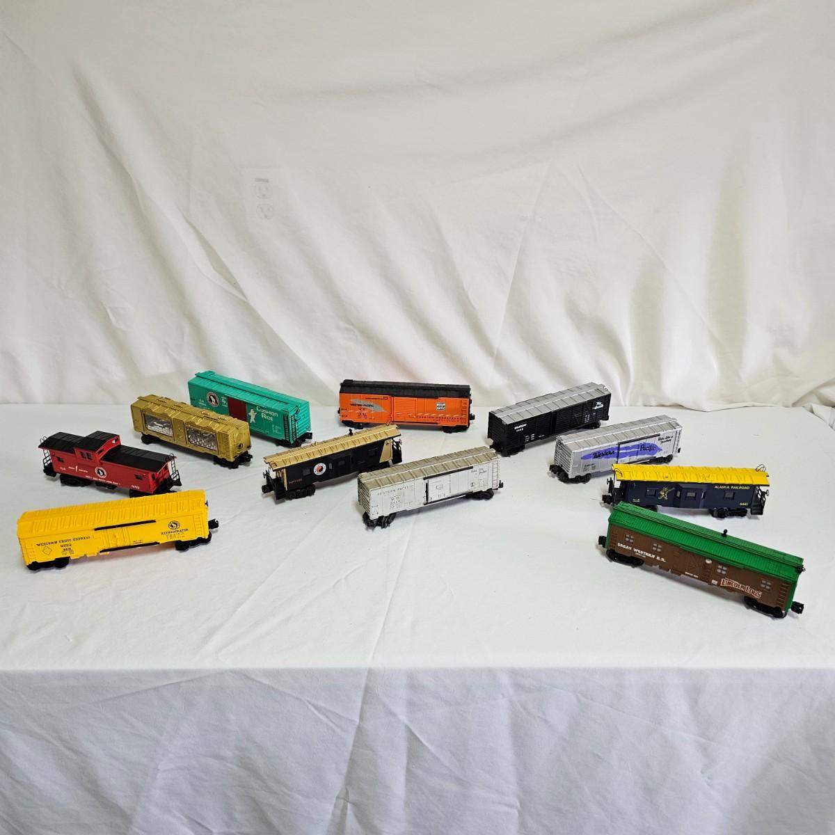 O gauge cars from several western locations' railroads, including Great Northern, Western Pacific, Alaska Railroad and more. Two Colorado mint cars with simulated bar loads. Reefers, boxcars, caboose and more. Most items have original boxes. Items with illumination have not been tested. See photos for details. Shipping available. Please note that any price tag seen on an item was not put there by Sterling Transitions and does not reflect the current value of the item.