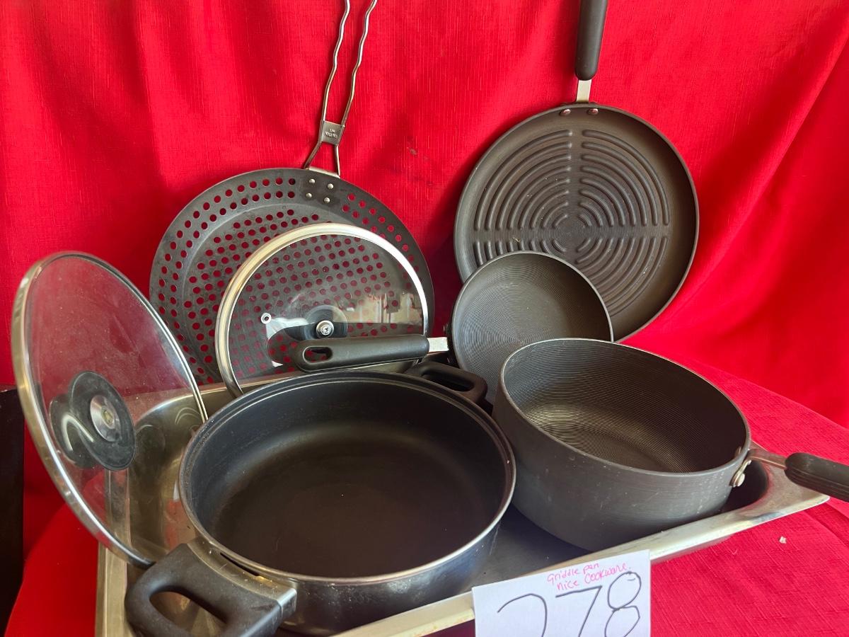 Great set of pans with a griddle along with a variety of sizes with lids nonstick