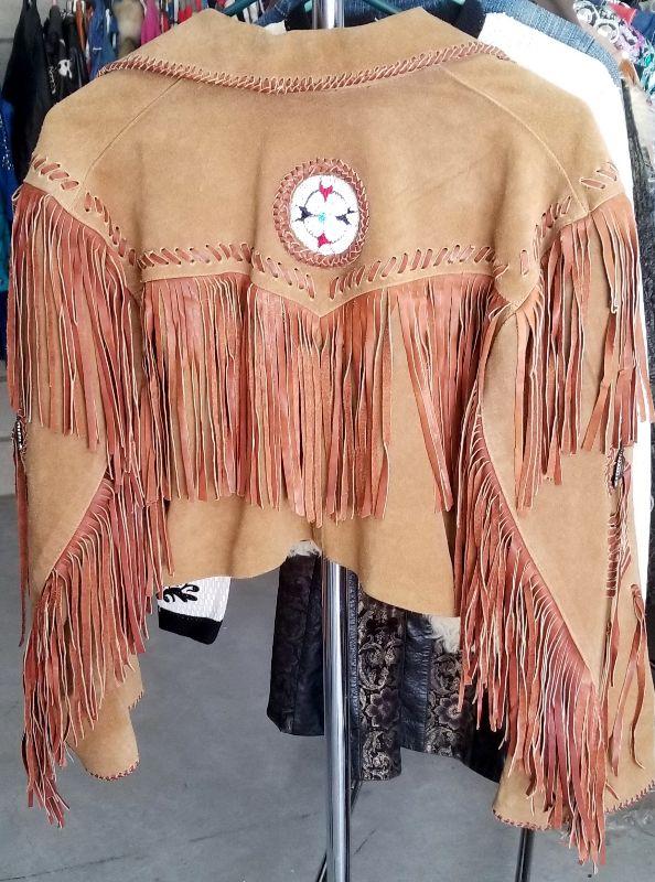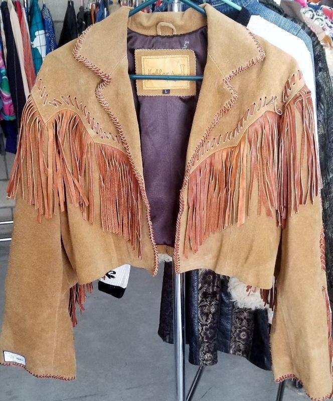 Great shorty cow girl suede jacket with rawhide fringe by Kobler