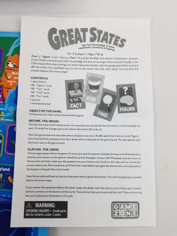 Great States Game. Missing 1 "Fun" set of cards, Otherwise New