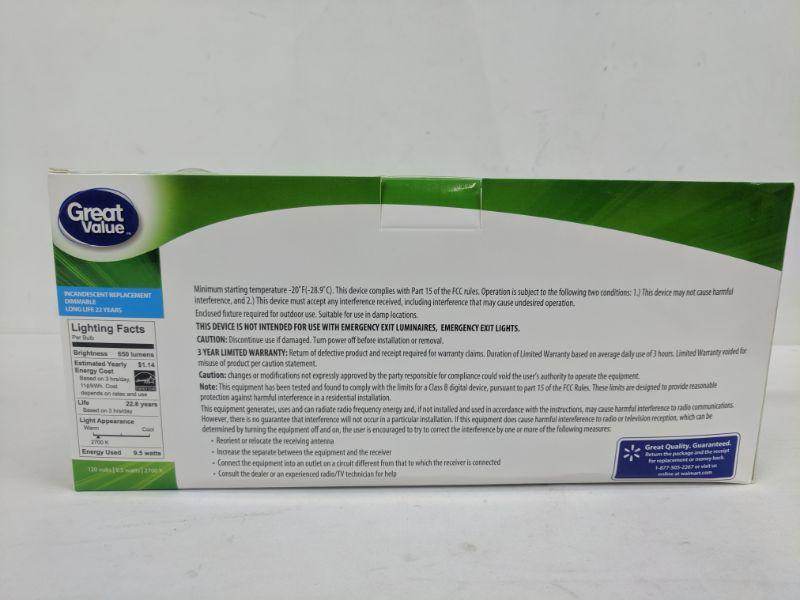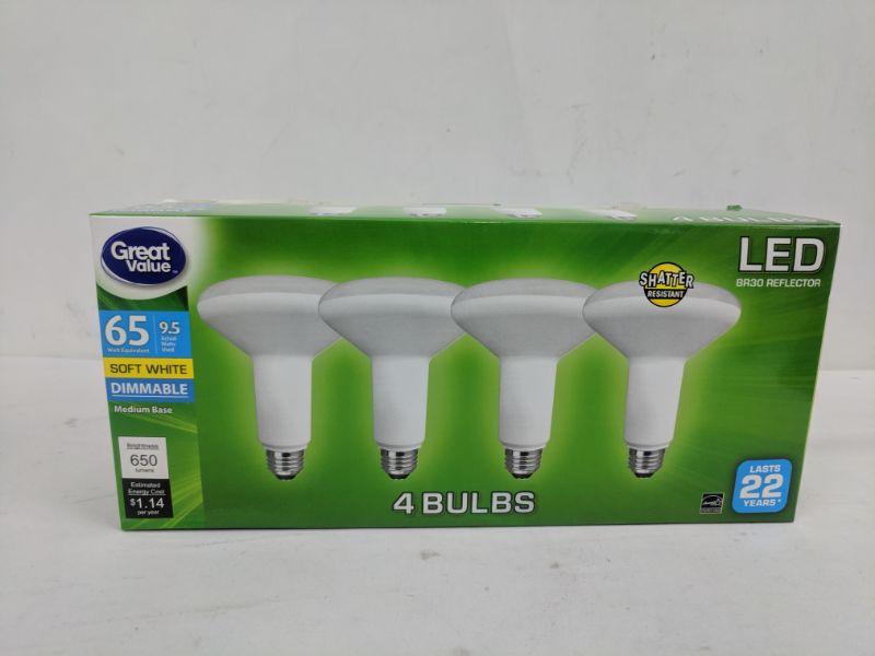 Great Value 65 Watt Soft White Dimmable LED Bulbs, 4 - New