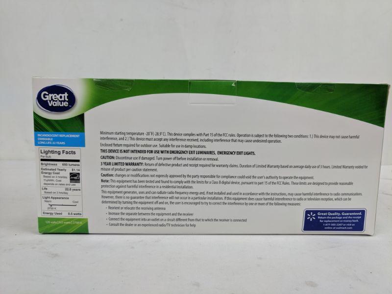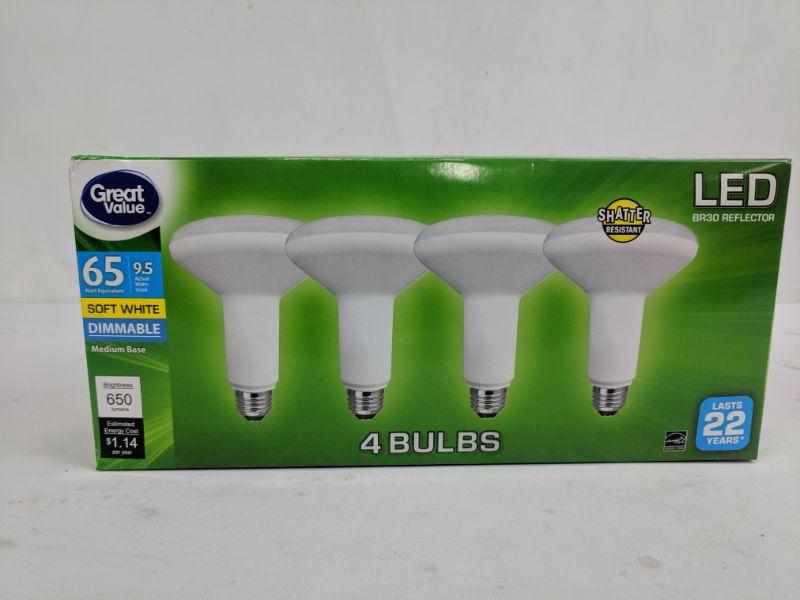Great Value 65w Soft White Dimmable LED Bulbs, 4 - New