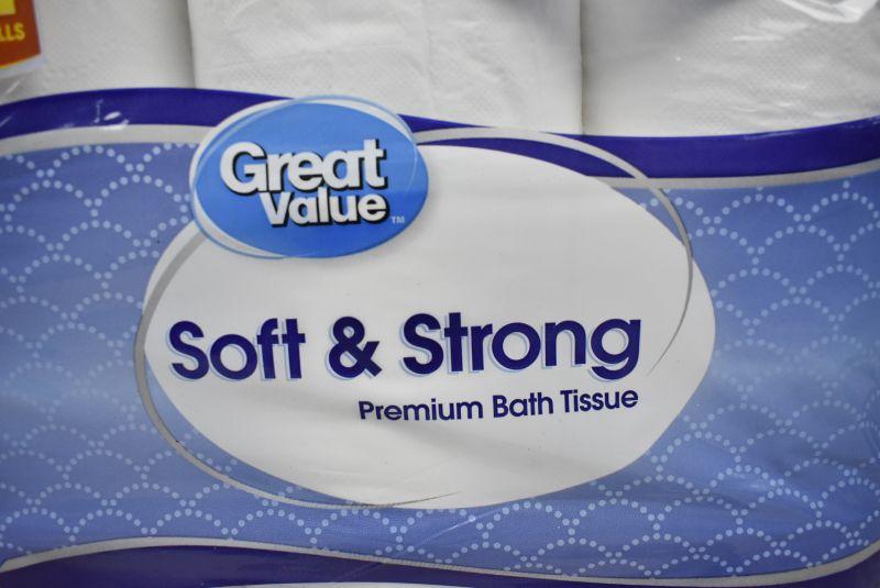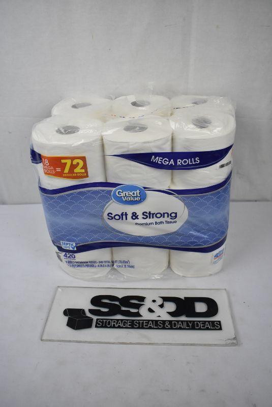 Great Value Soft & Strong Premium Bath Tissue, 18 Mega Rolls. Slightly open package - New
