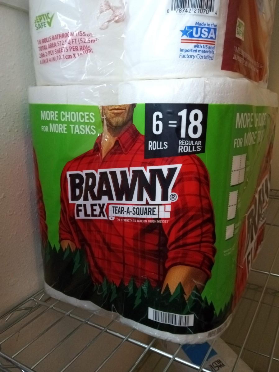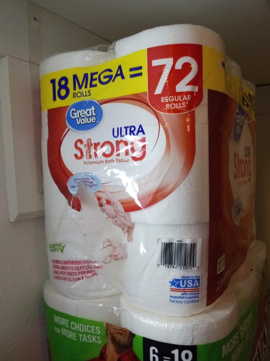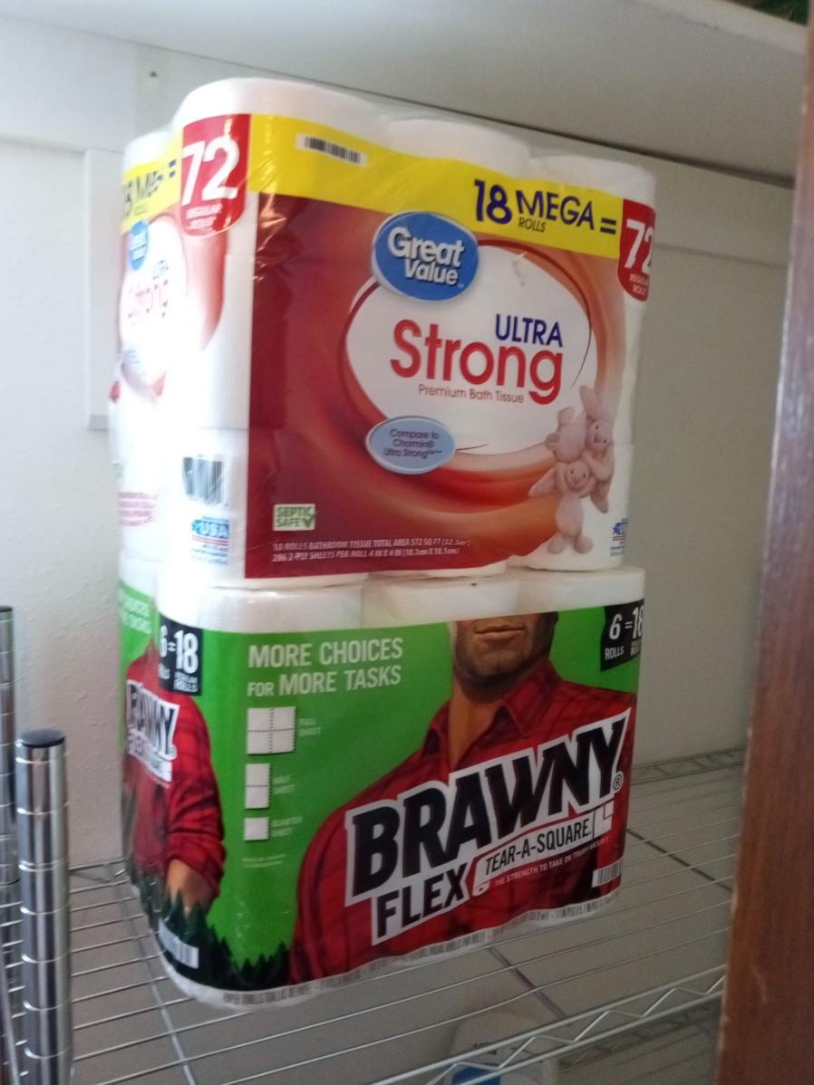 GREAT VALUE TOILET PAPER AND BRAWNY PAPER TOWELS