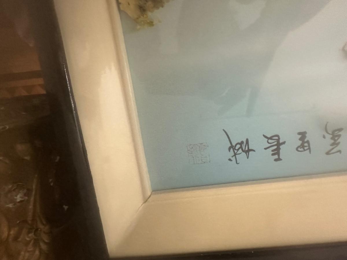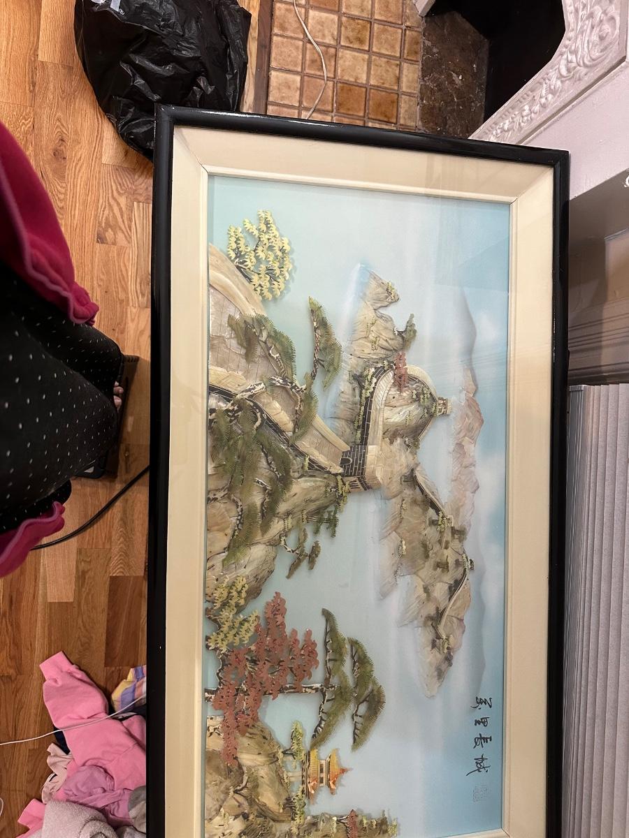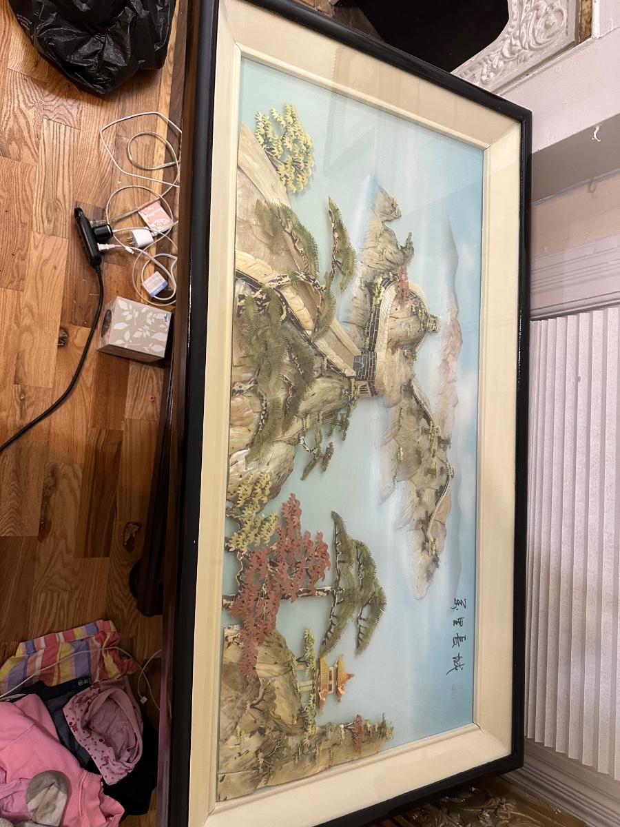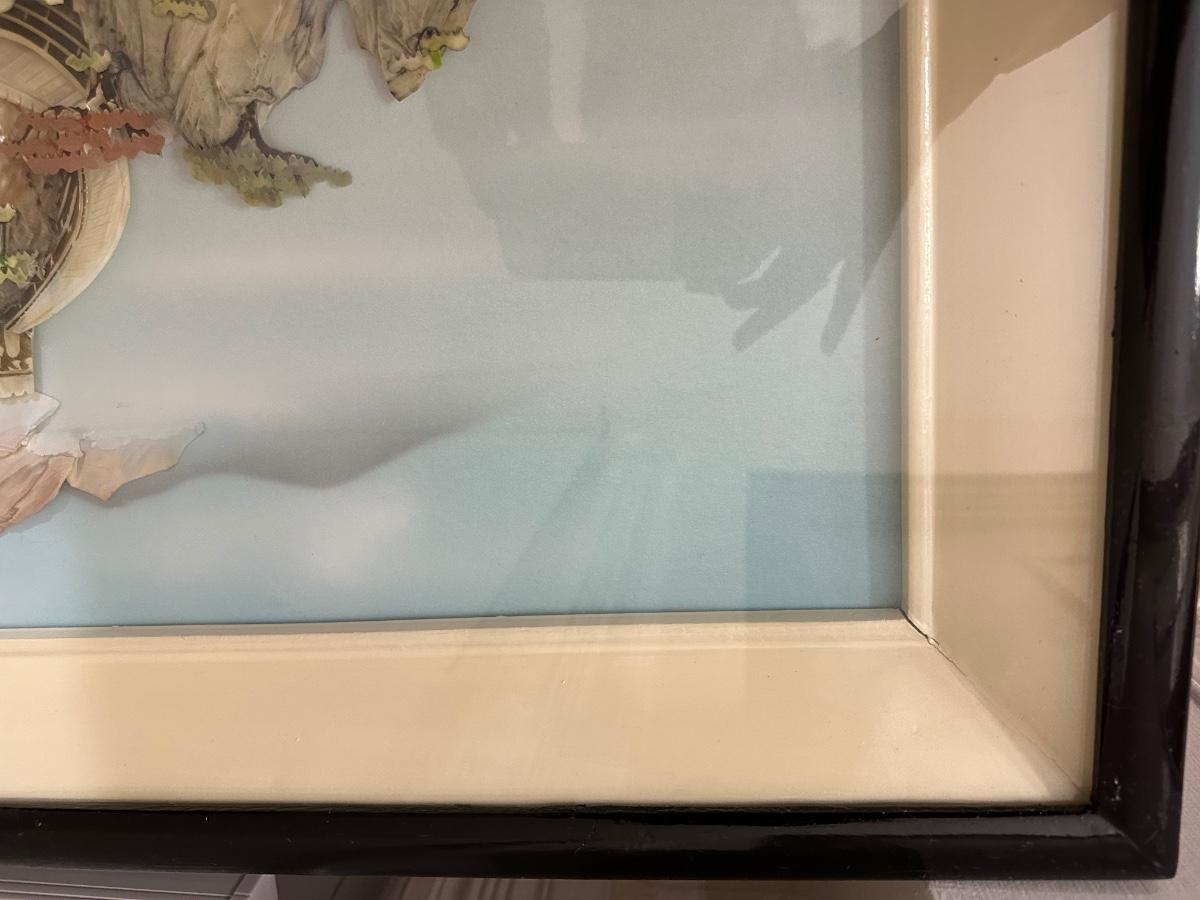 “Great Wall at home” vintage Chinese shell carving framed shadow box wall art