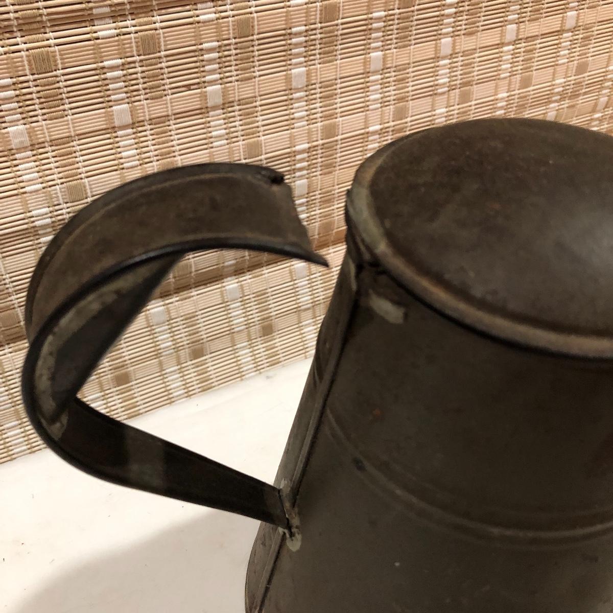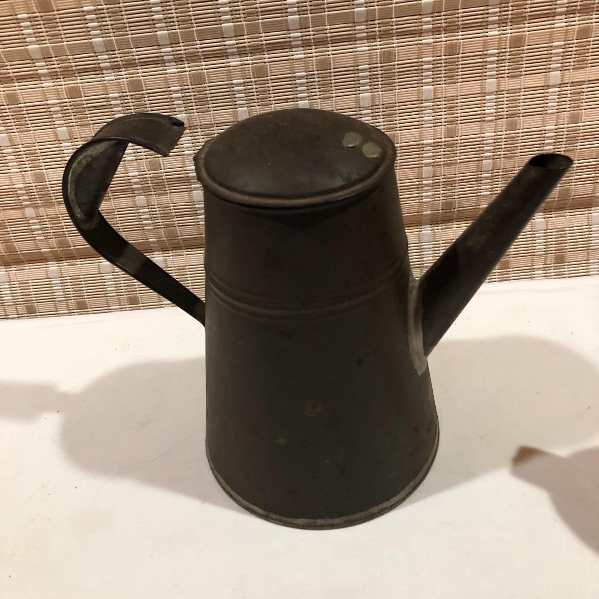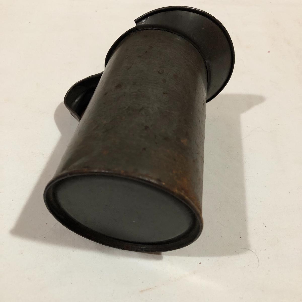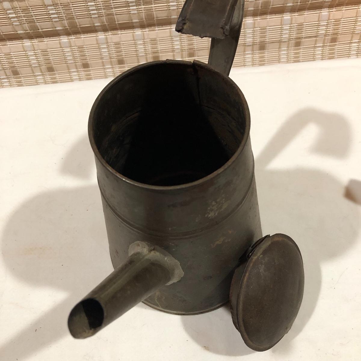 The standard French M1852 mess kit dates back to World War I 1914-1918. It measures 5” in diameter. There are no dents or dings and it is all intact. The coffee pot dates to the civil war. The handle and hinged lid needs soldering. It is made of tin and there is some rust inside. It is 8” tall. The small milk/cream pitcher is also tin, from the Civil War time frame and stands 4.5” tall. There are a few small pin holes in the side. Shipping Available.