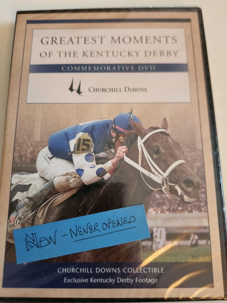 This auction lot is for a copy of the Greatest Moments of the Kentucky Derby DVD. This new and unopened item was produced as a commemorative of this great sporting event by Churchill Downs. This item is not dated on the exterior, but holds exclusive Derby footage.