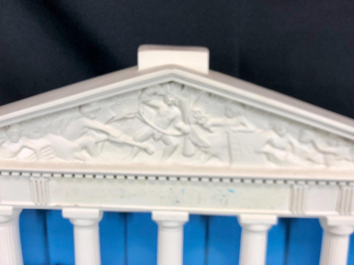 Heavy, can stand on its own, believe it’s alabaster but not sure.