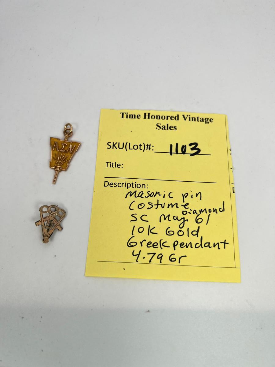 Greek Pendant 10 K gold and Masonic Diamond Pin