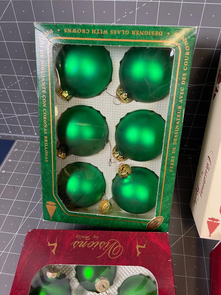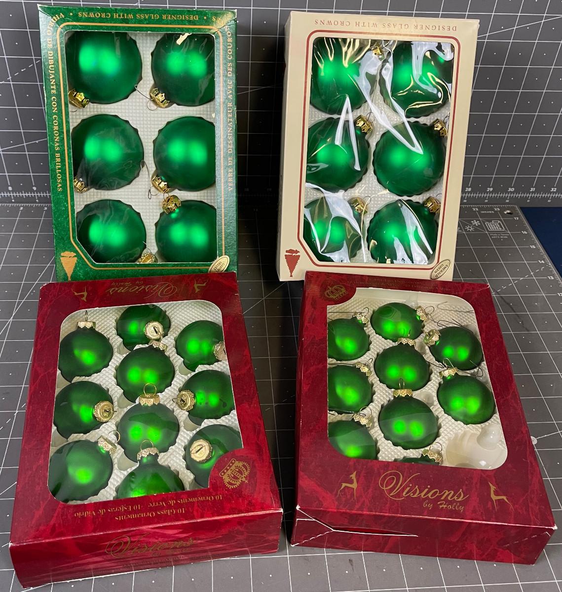GREEN (4) Boxes for Satin Finish Ornaments 2 & 3 Inches