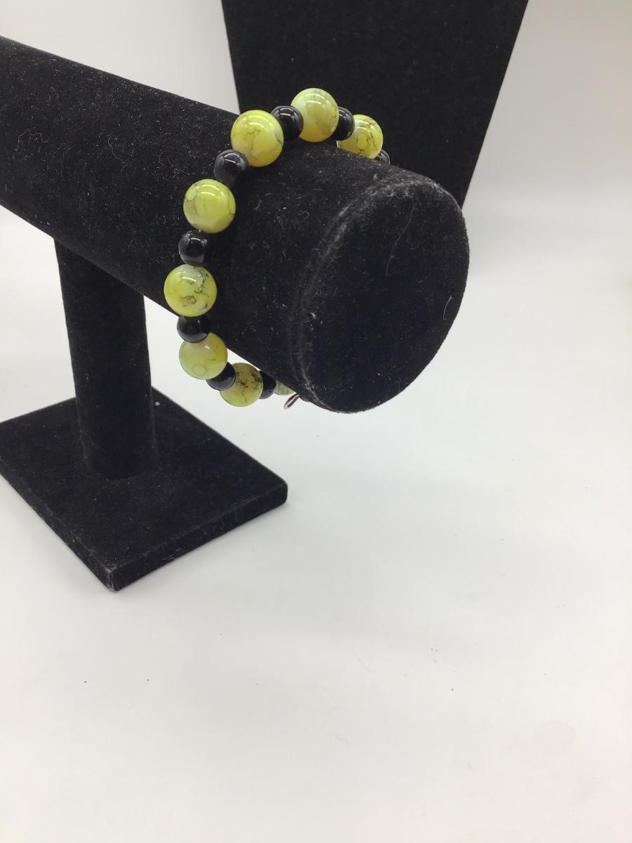 Green and black beaded bracelet