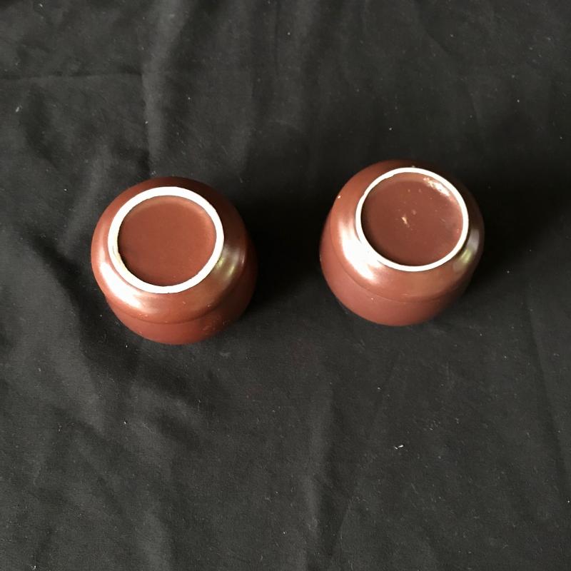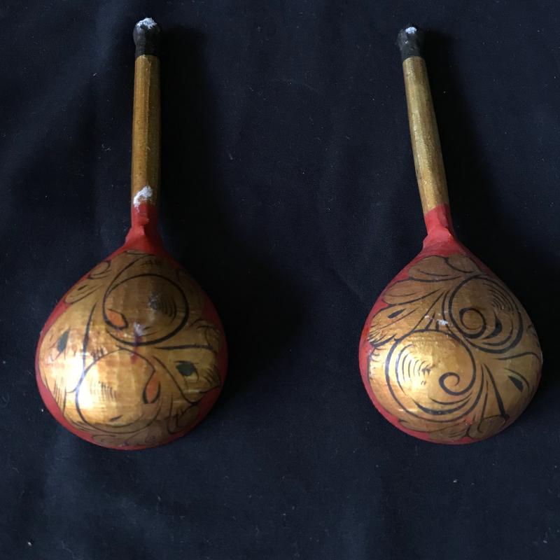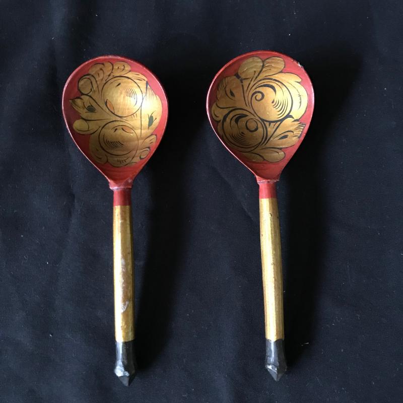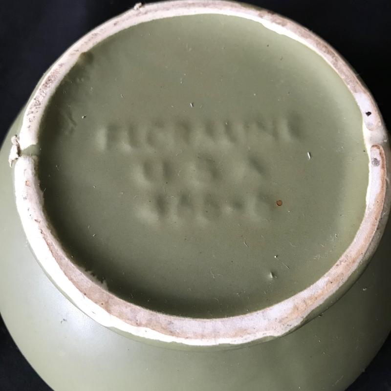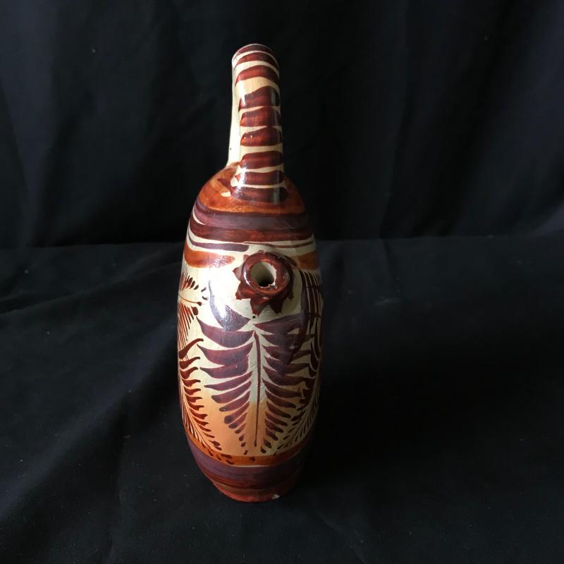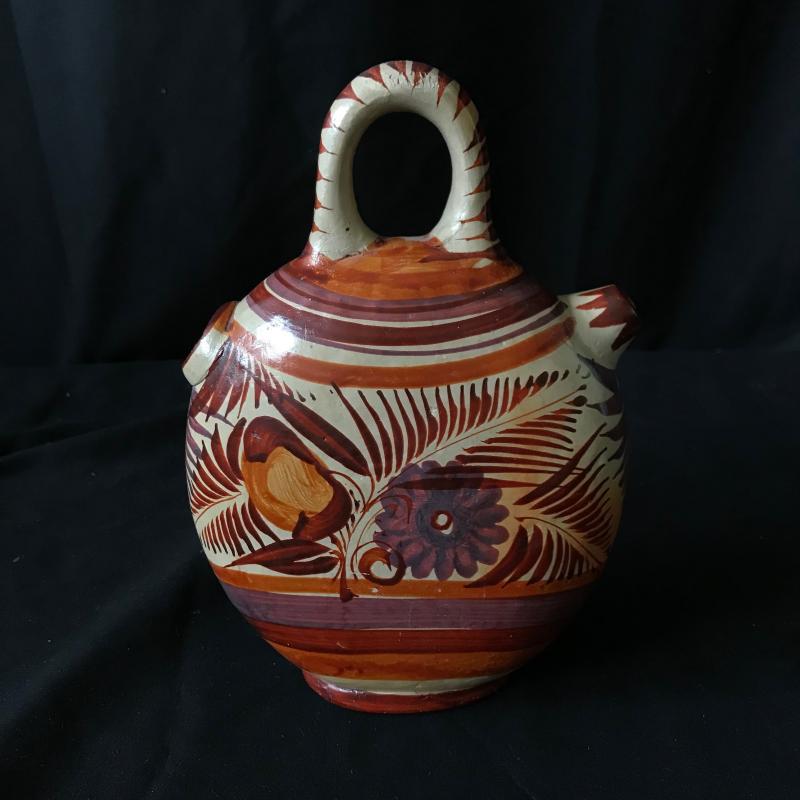 Lot contains pottery of various styles, all in green and brown tones. Larger green planter is marked “Haeger” and is approx. 5” in diameter and 5” tall. Mexican Folk Art piece is approx. 6” x 2” x 8”. Lot also included a pair of Folk Art painted wooden spoons. Shipping available or local pickup in Hendersonville, NC.