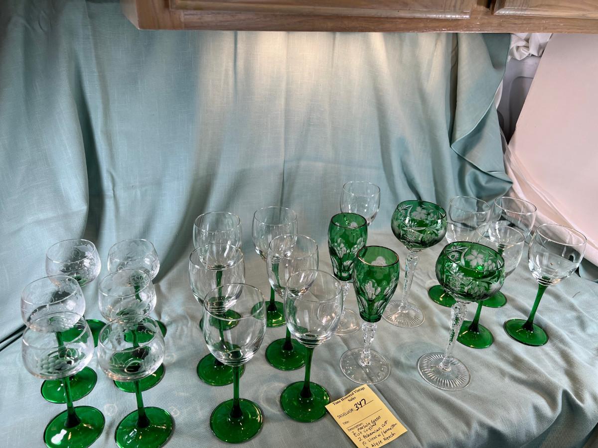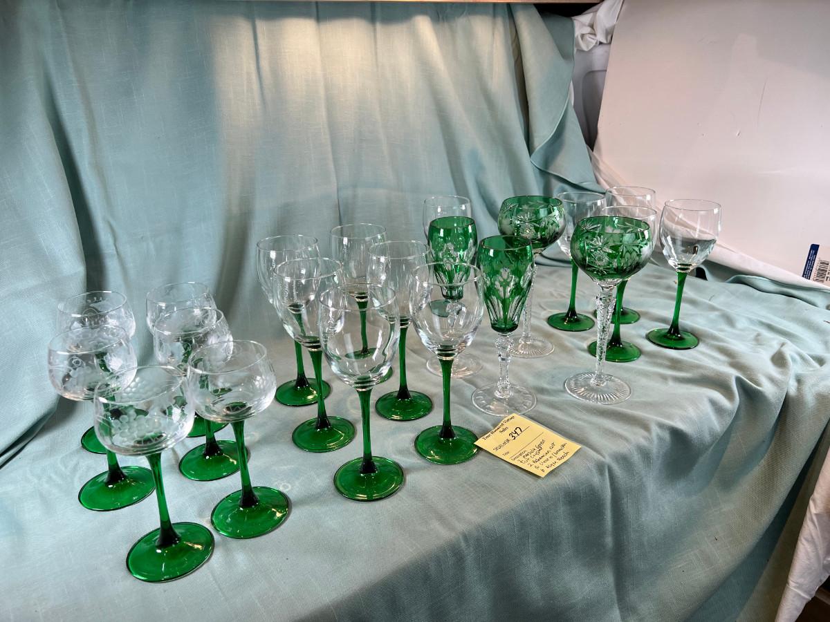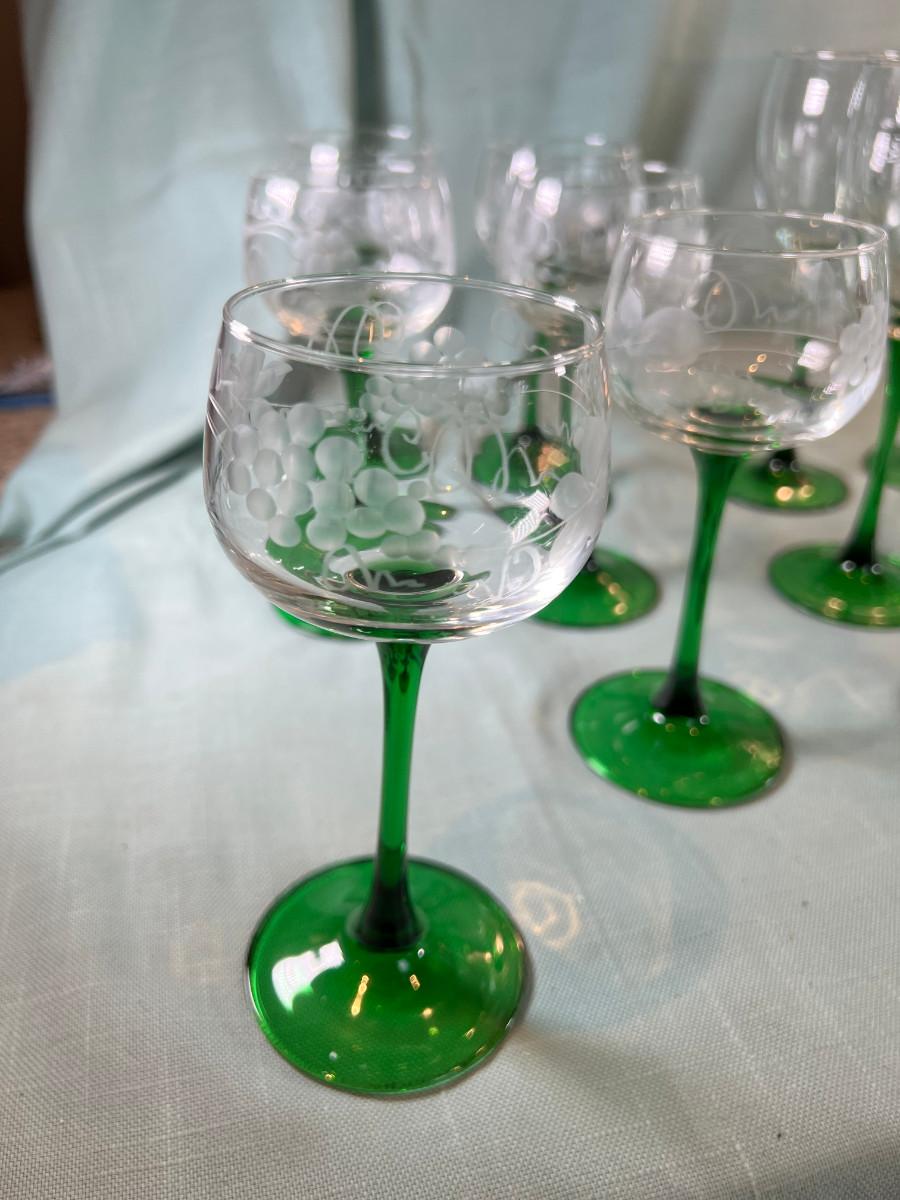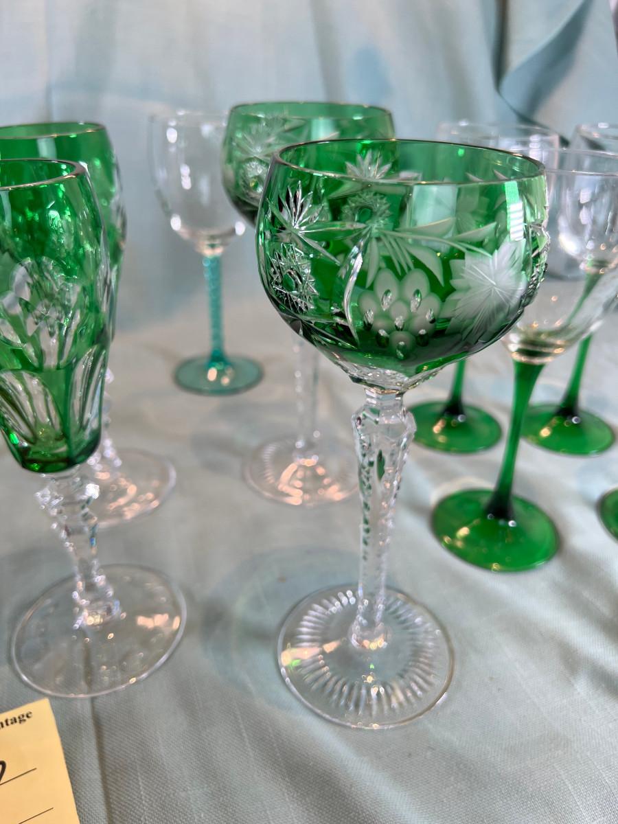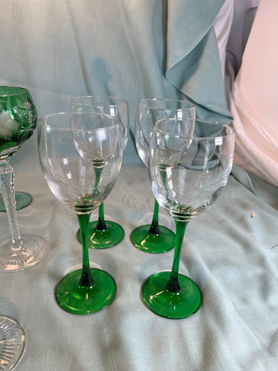 Green and clear cystal wine glasses