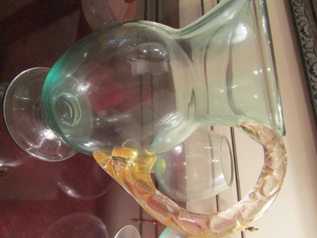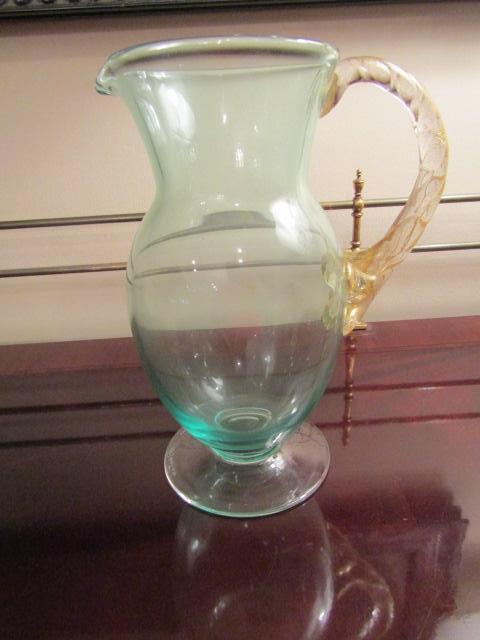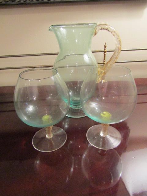 Green and Gold Glass Pitcher Set
