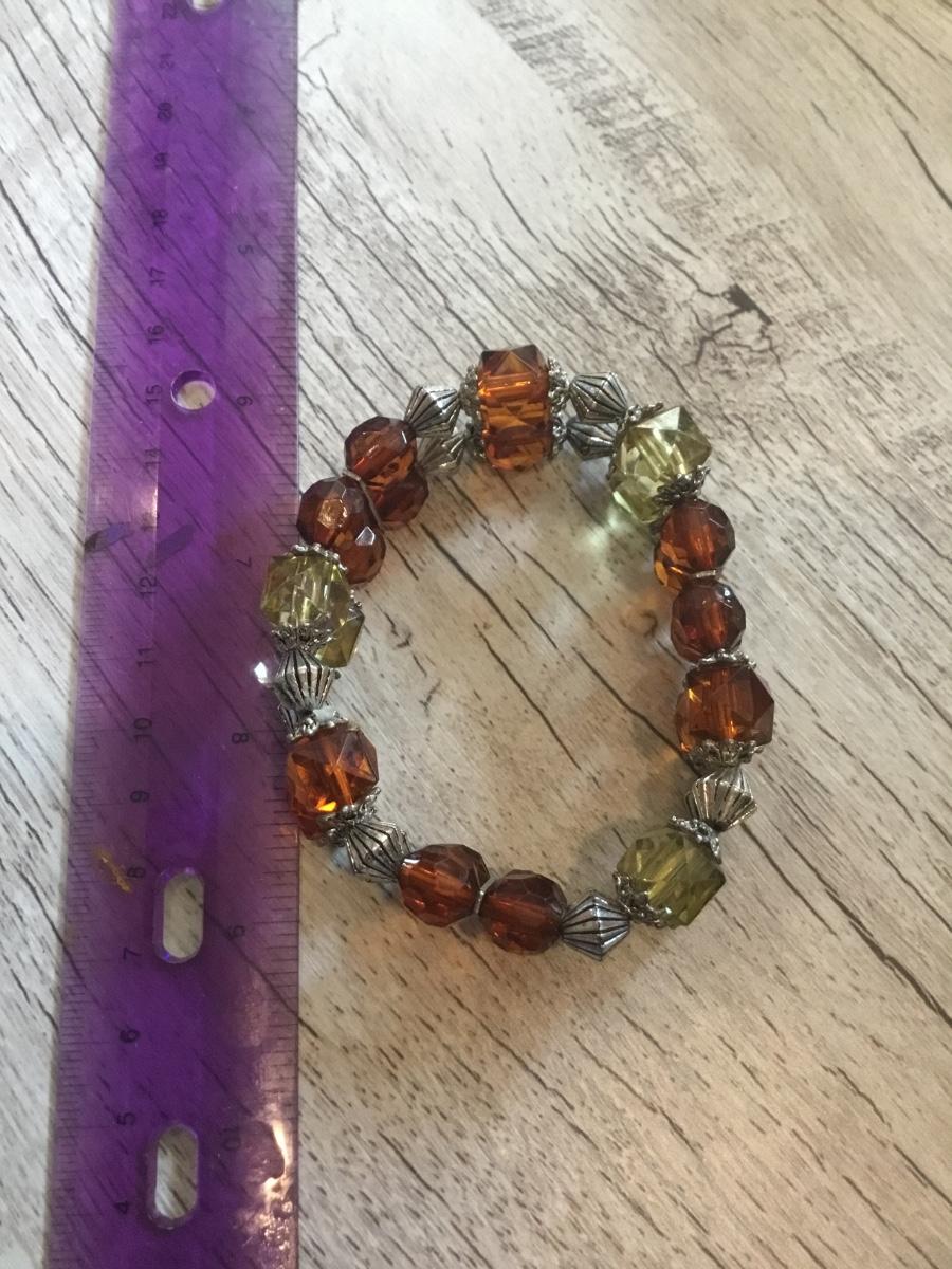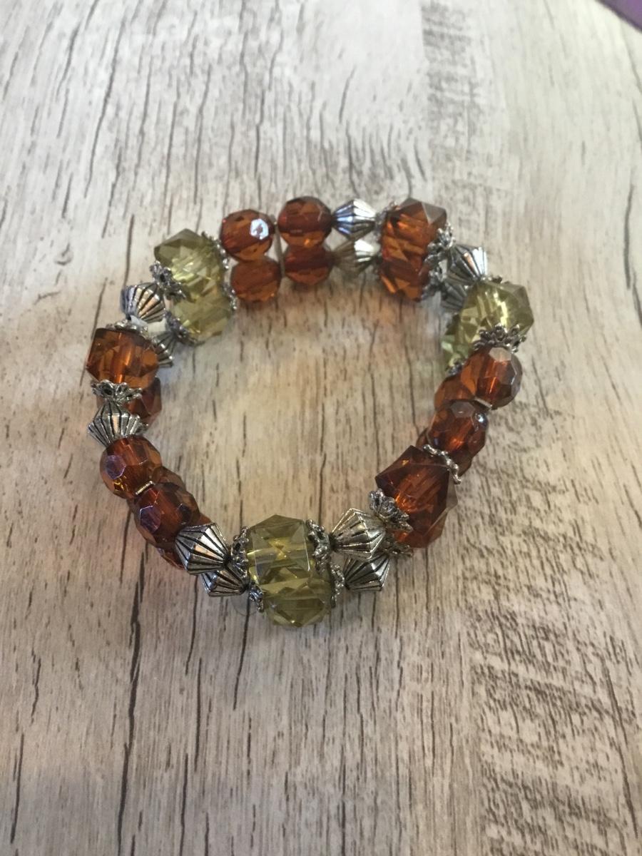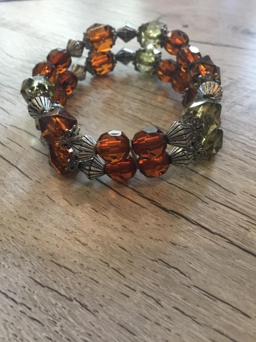 Green and orange beaded stretchy bracelet