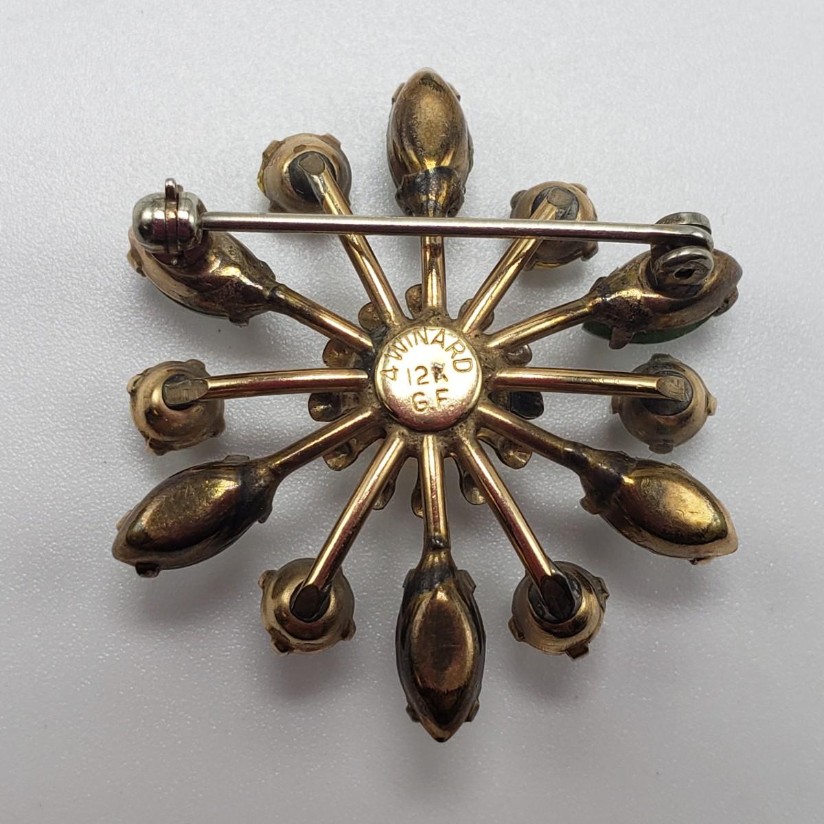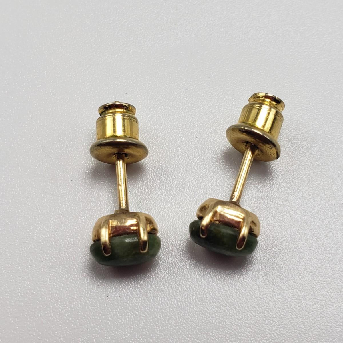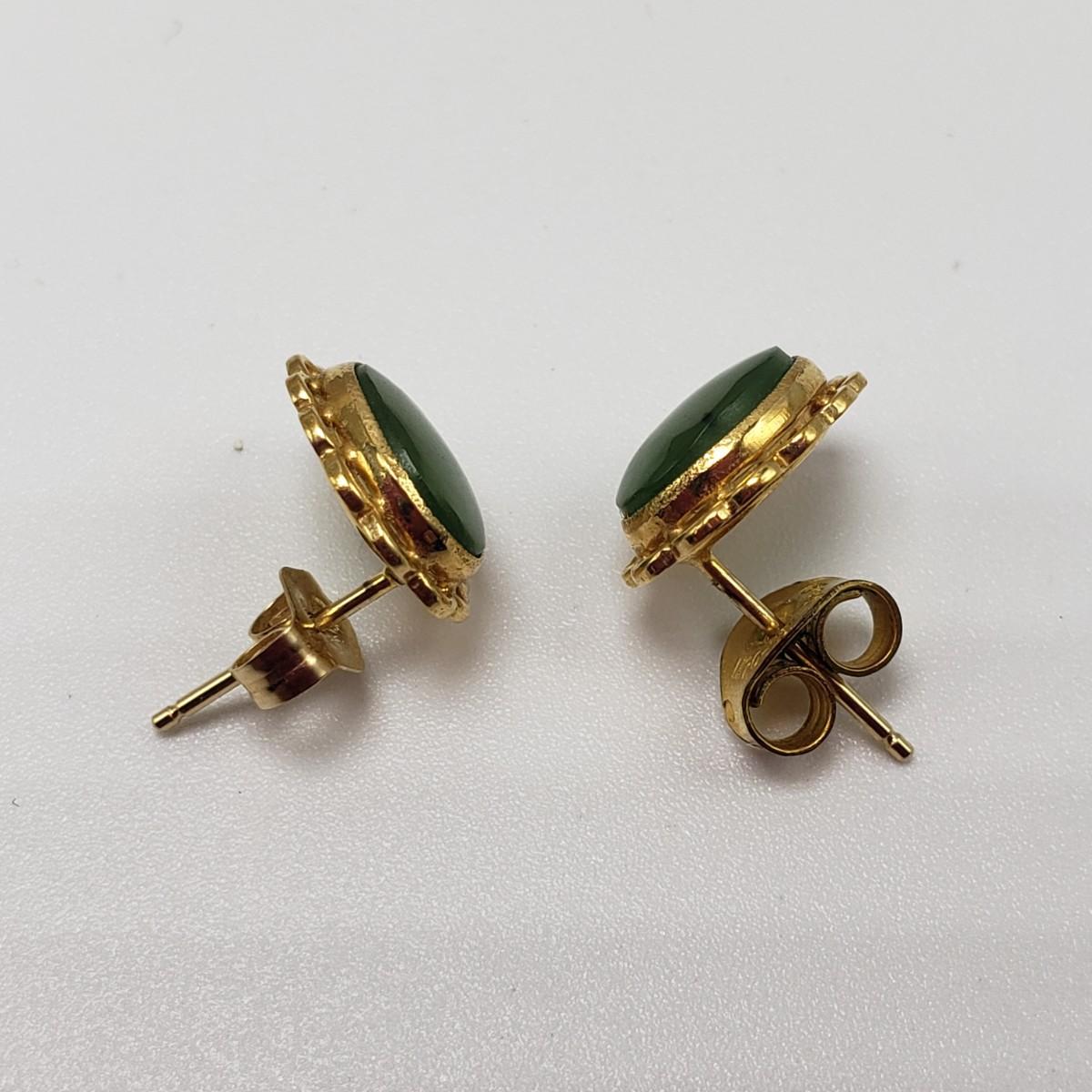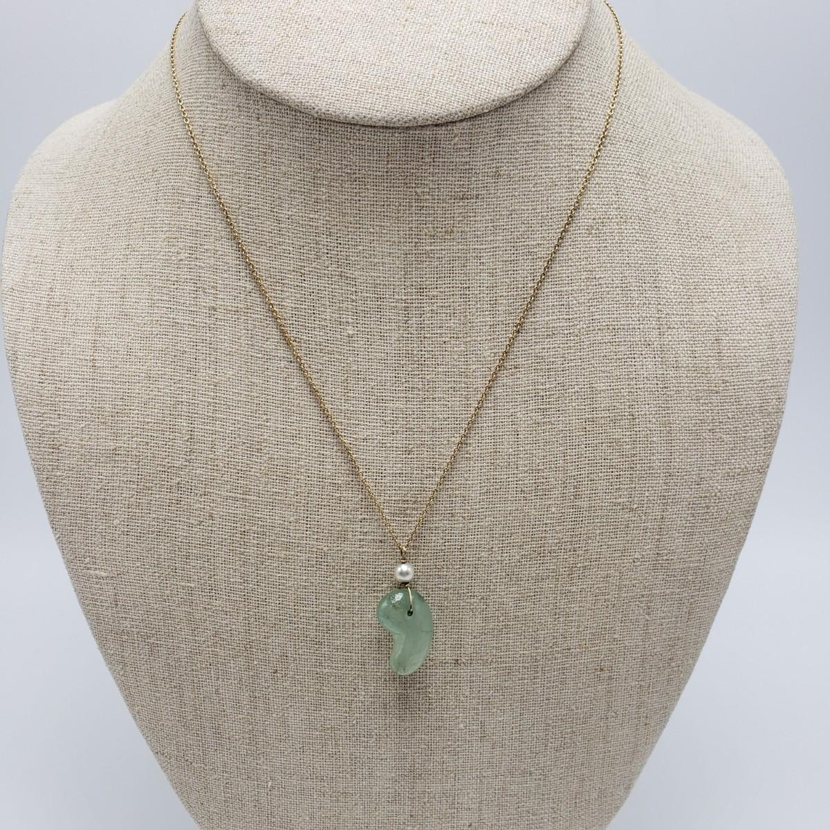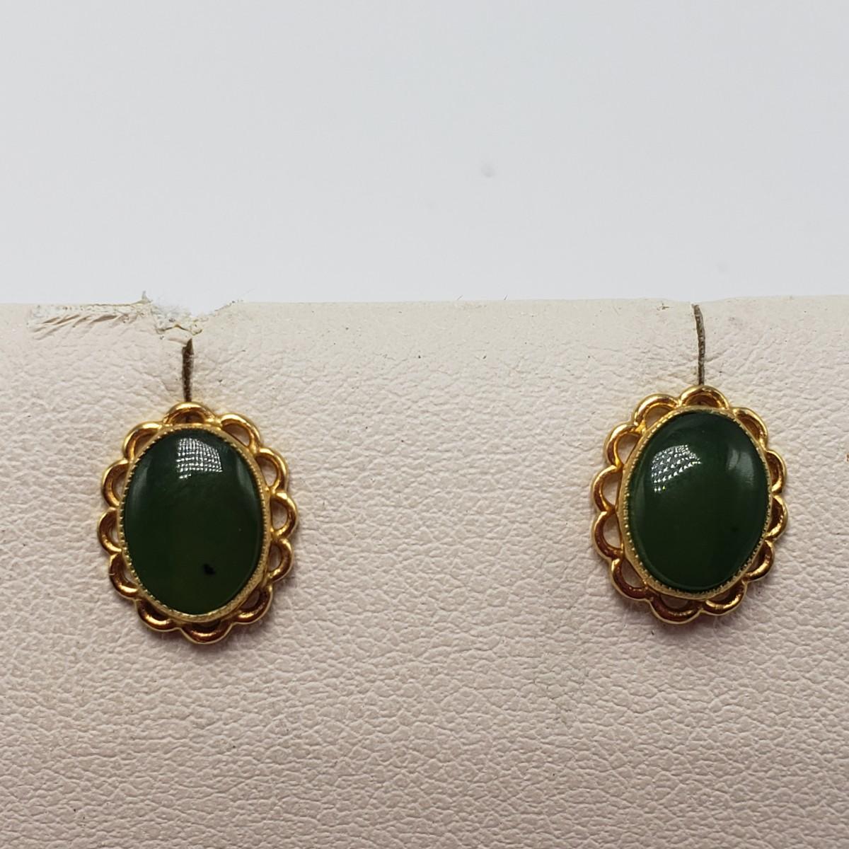 This lot features a green stone and pearly pin stamped with "4 Winard/12 K GF". The pendant is approximately 1 inch. The necklace chain measures 16" long and features a jade like stone with a pearly bead. There are 2 sets of post earrings. The larger green stone post earrings backs are stamped with "14K", as shown in picture. All sales are final. No returns or refunds. Please bid accordingly.