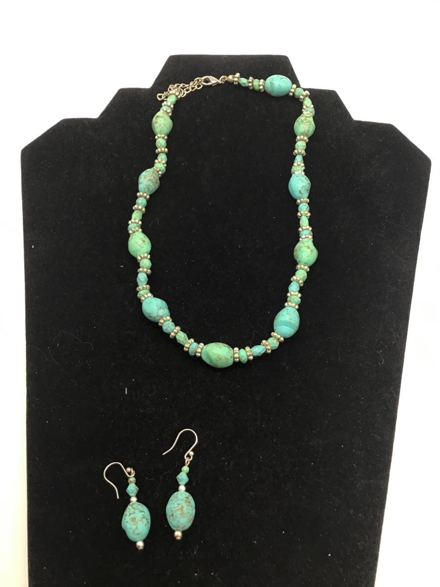 Green and turquoise fashion beaded necklace and earrings set