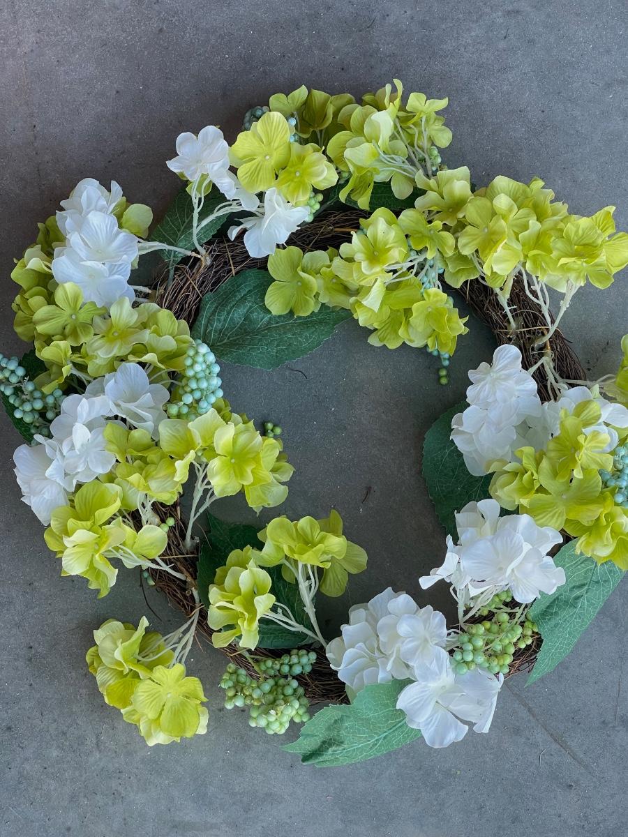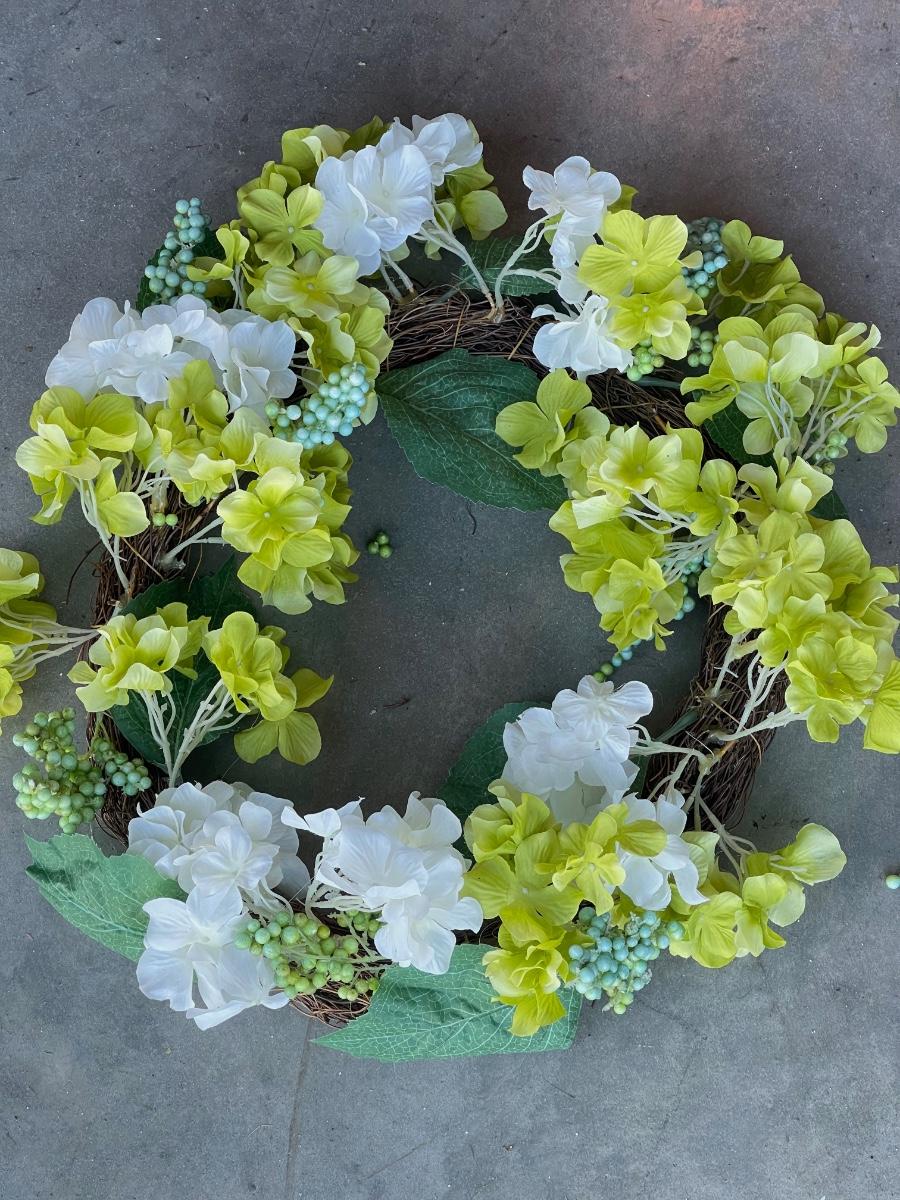beautiful green and white flowers wreath
