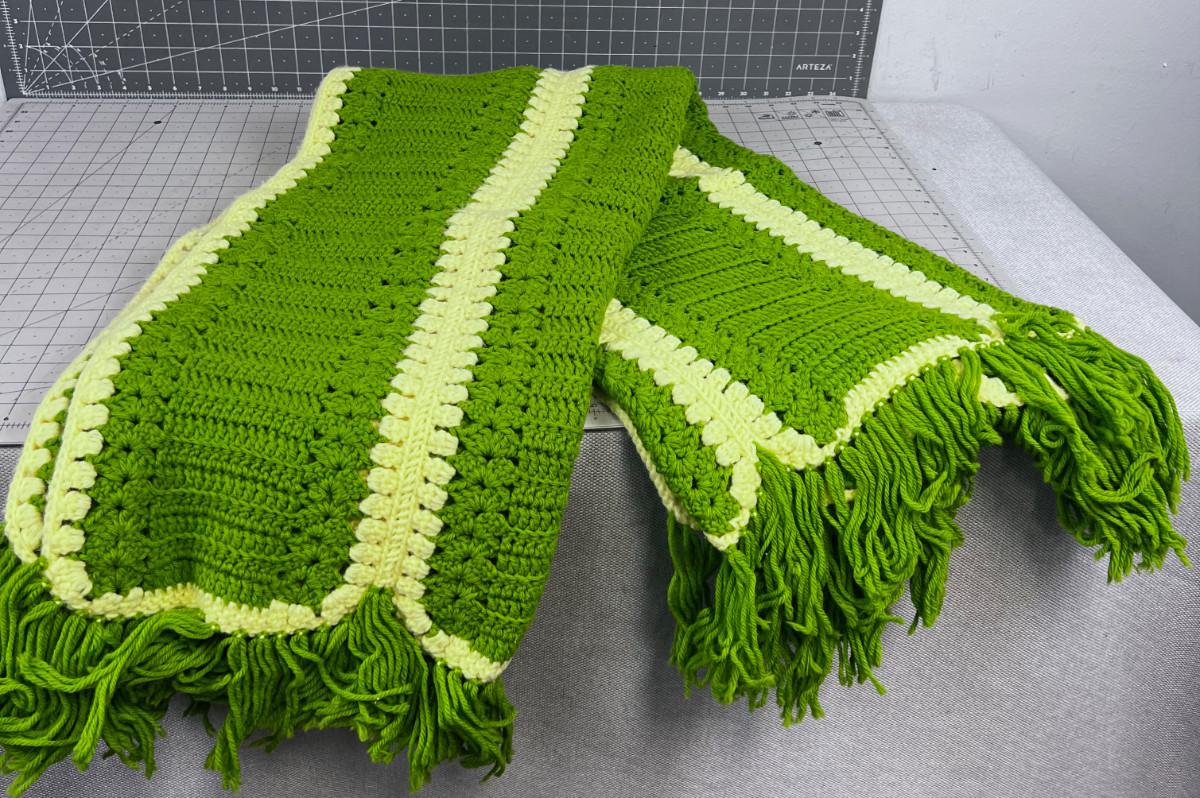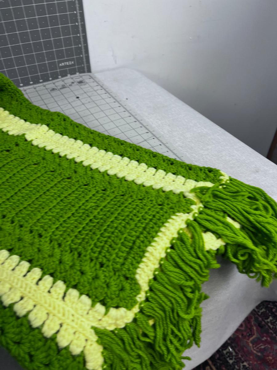 Green and Yellow Afghan - Hand Crafted/Crocheted with Yarn in the 80's!