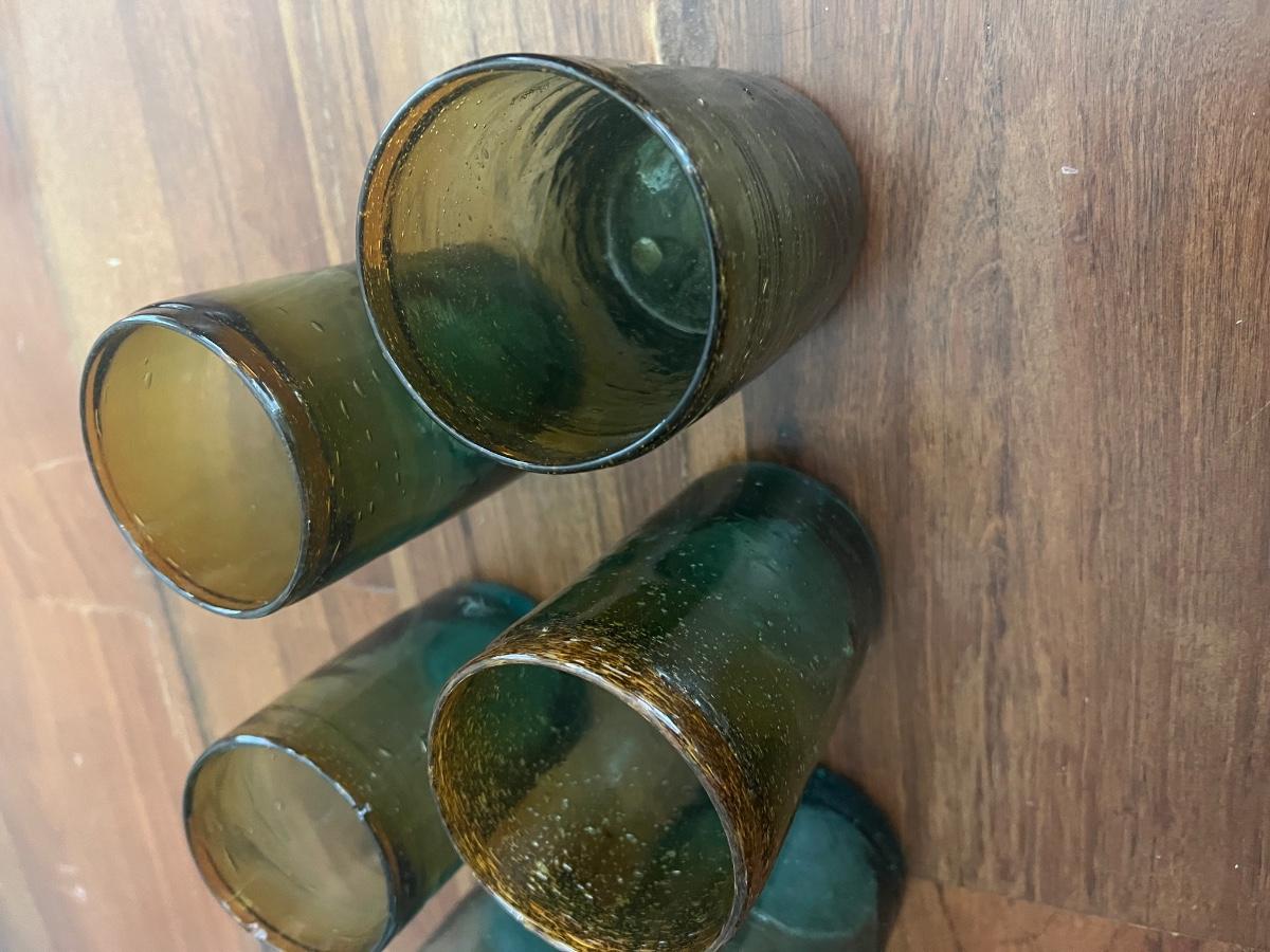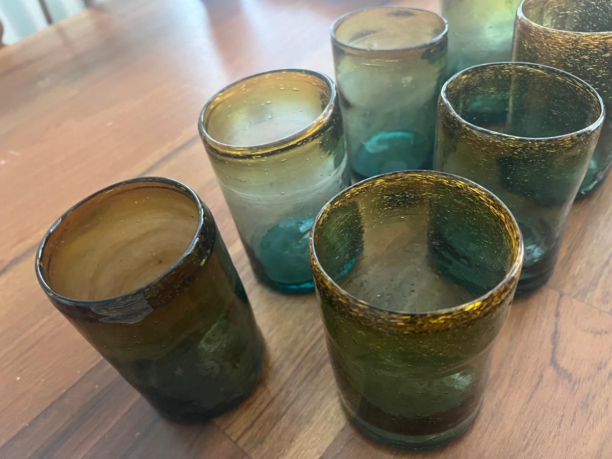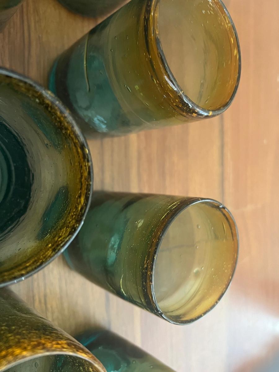 Green and Yellow Mexican Hand Blown Glass Cups
