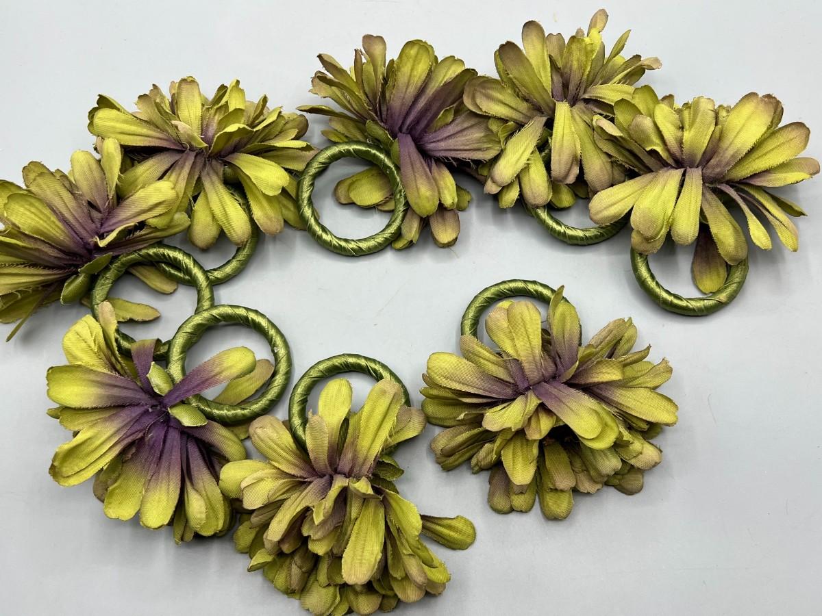 Green Artificial Floral Napkin Ring Holders Set of 6. Good used condition.