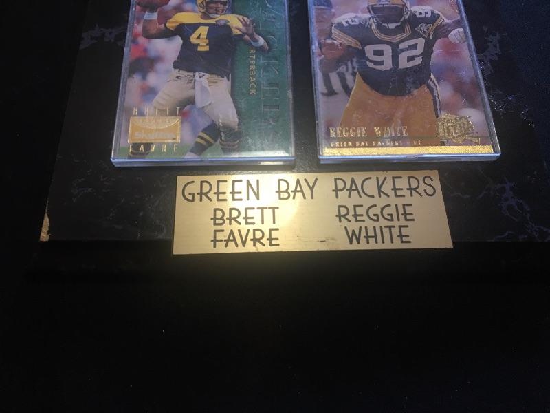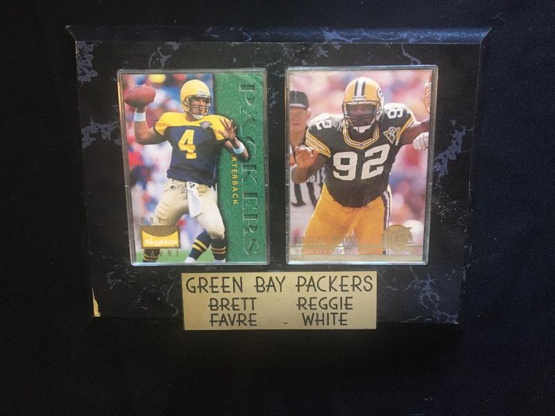 Green Bay Packers football card plaque with Brett Favre and Reggie White