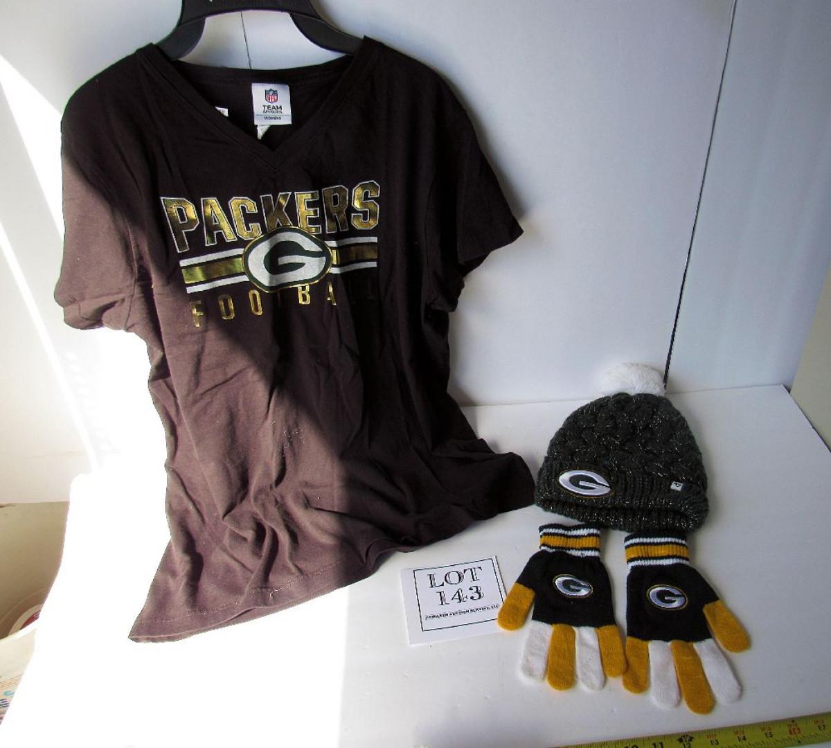 Green Bay Packers Ladies XL T-Shirt, Cap and Gloves
