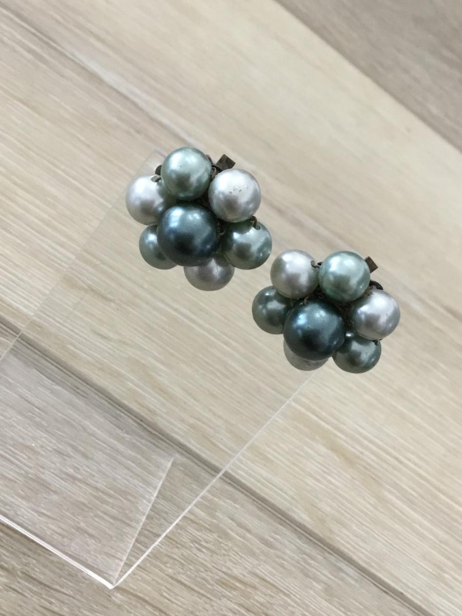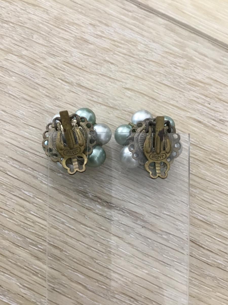 Green beaded clip on Japan marked vintage earrings