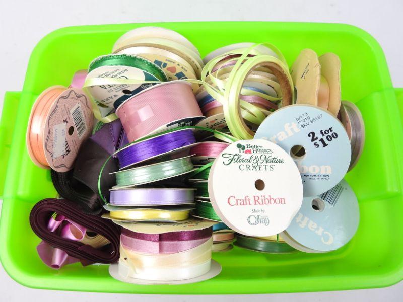 Green Bin Full of Craft Ribbon