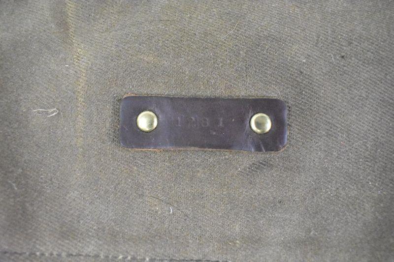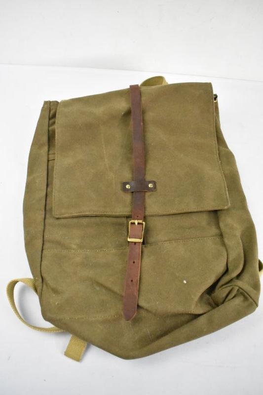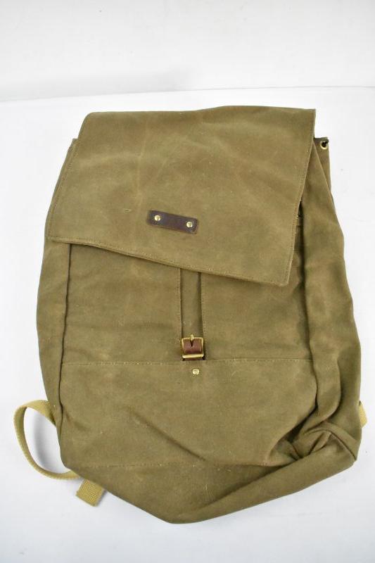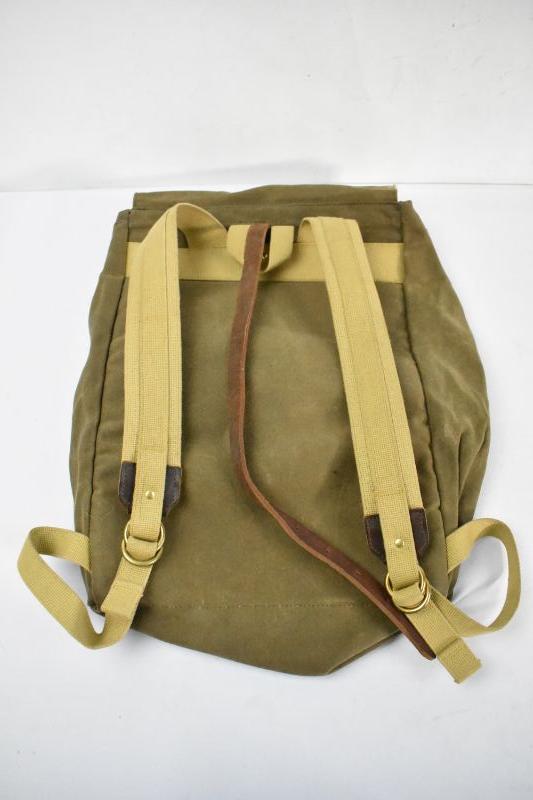 Green Canvas Heavy Duty Backpack by Archival Clothing Green/Tan/Brown. Laid out flat bag measures about 16x20".