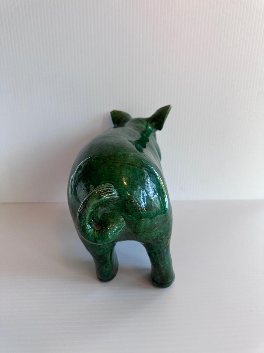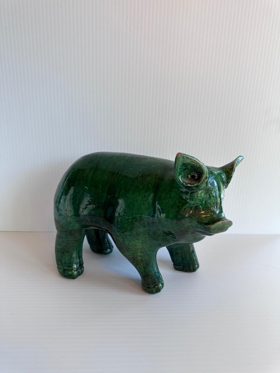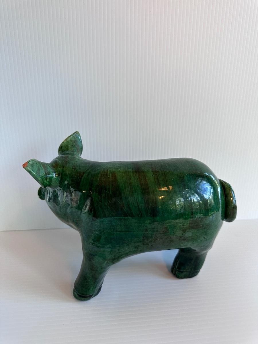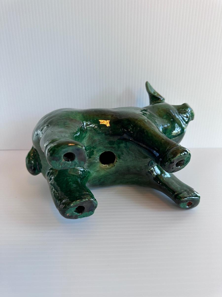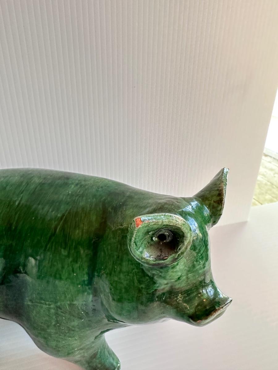 Painted green ceramic pig. Has some paint loss on ear tips.