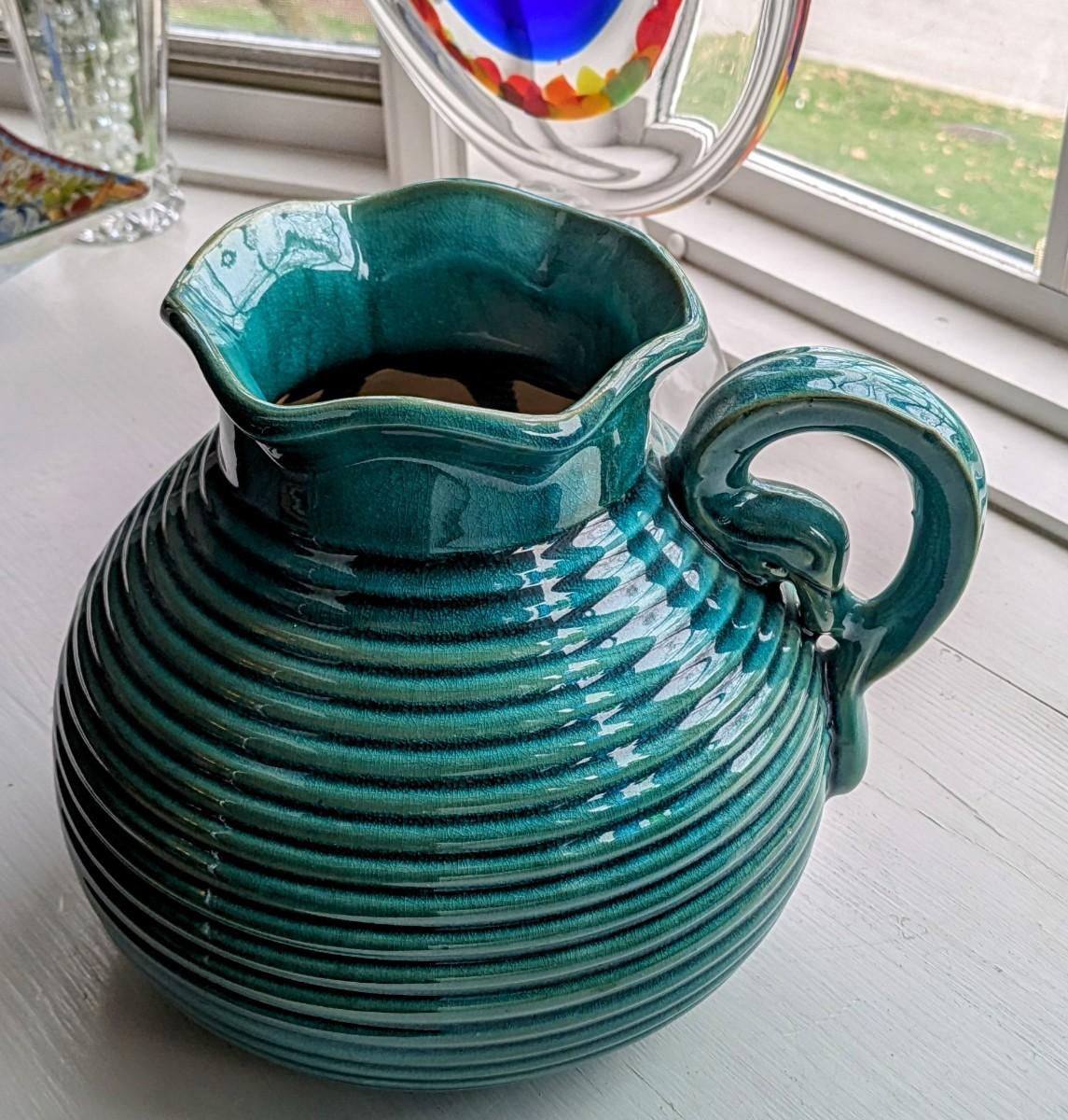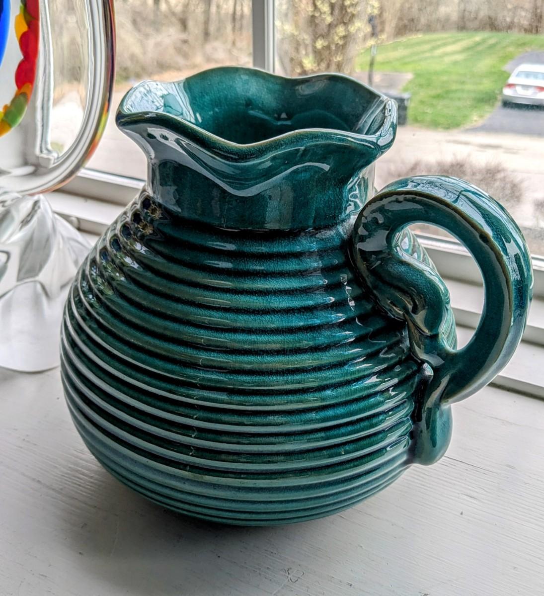 Green/Blue Stoneware Pitcher with Handles
