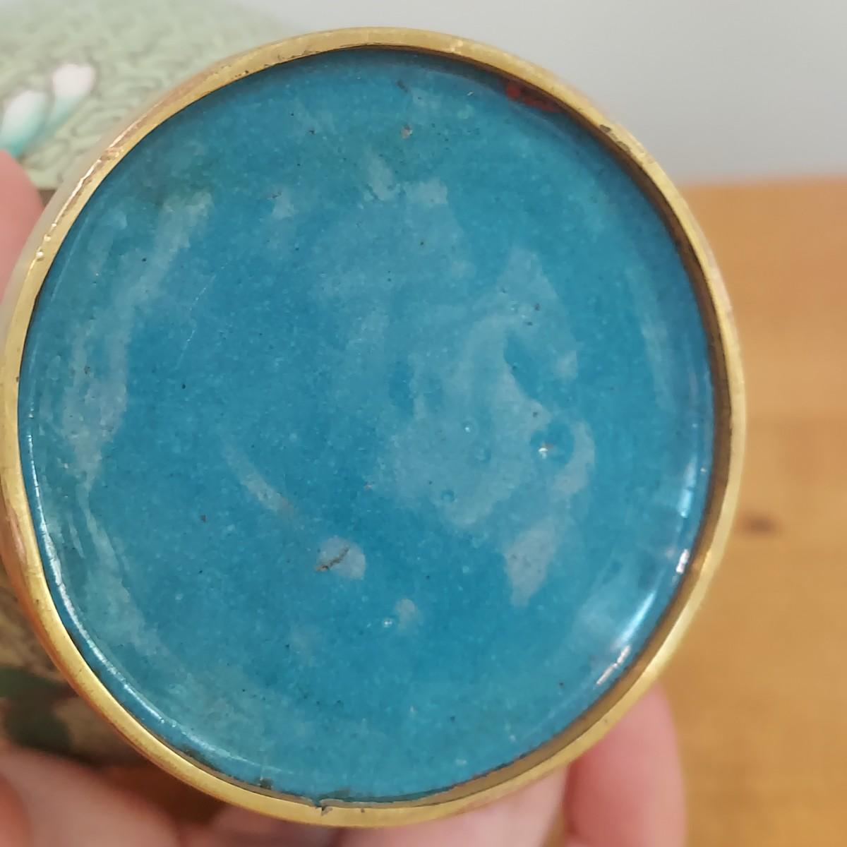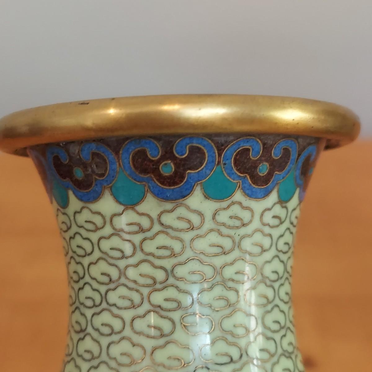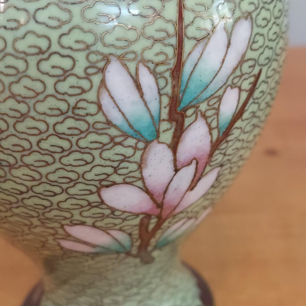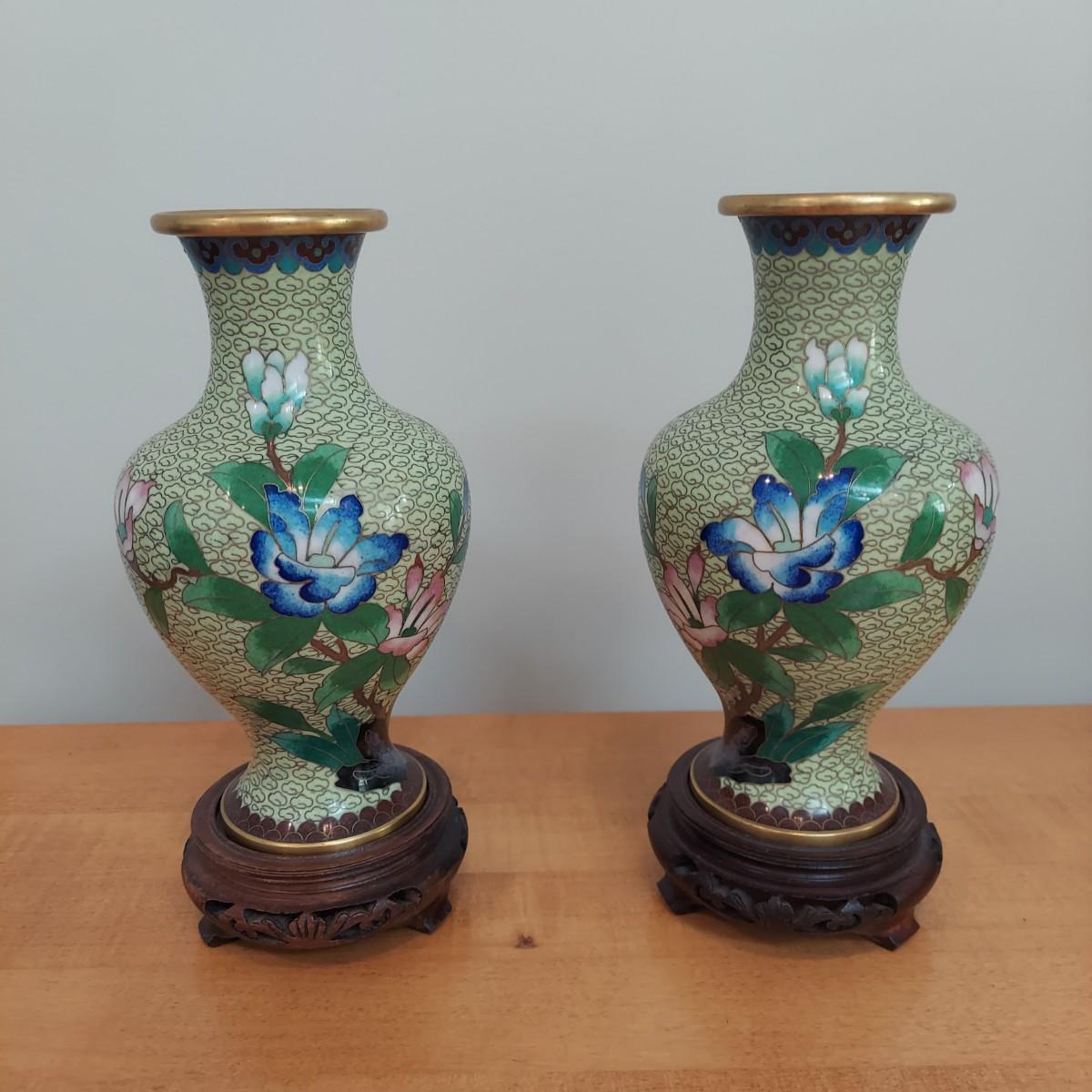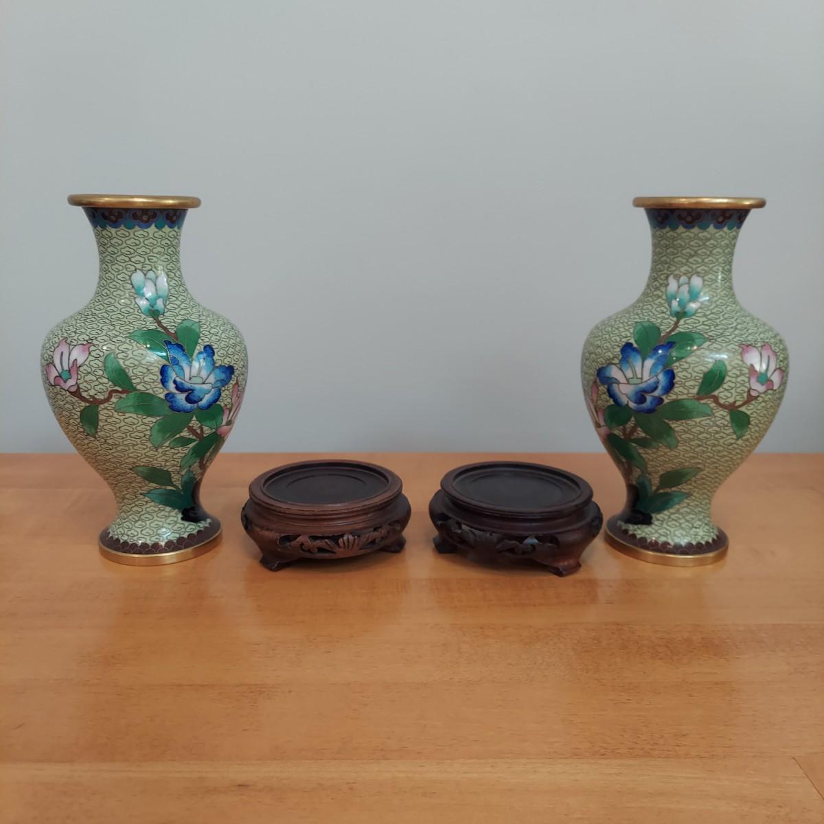 Green Cloisonne Vases w/ Wood Stands (GB-BBL)