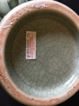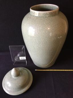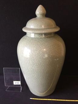 Green Crackle Glaze Asian Decorative Lidded Jar