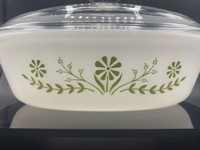 Green Daisy Flower Glasbake Oval Casserole Dish with Lid
