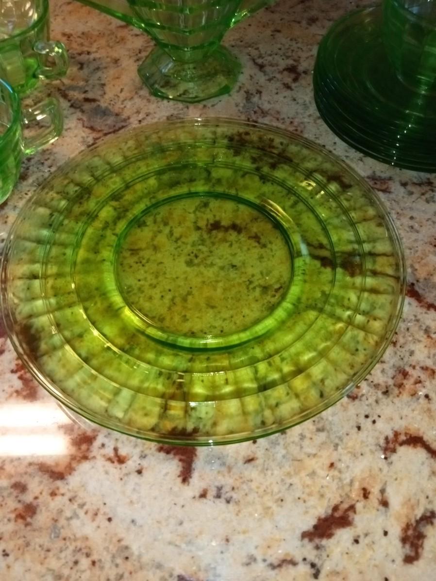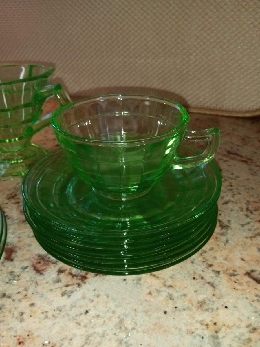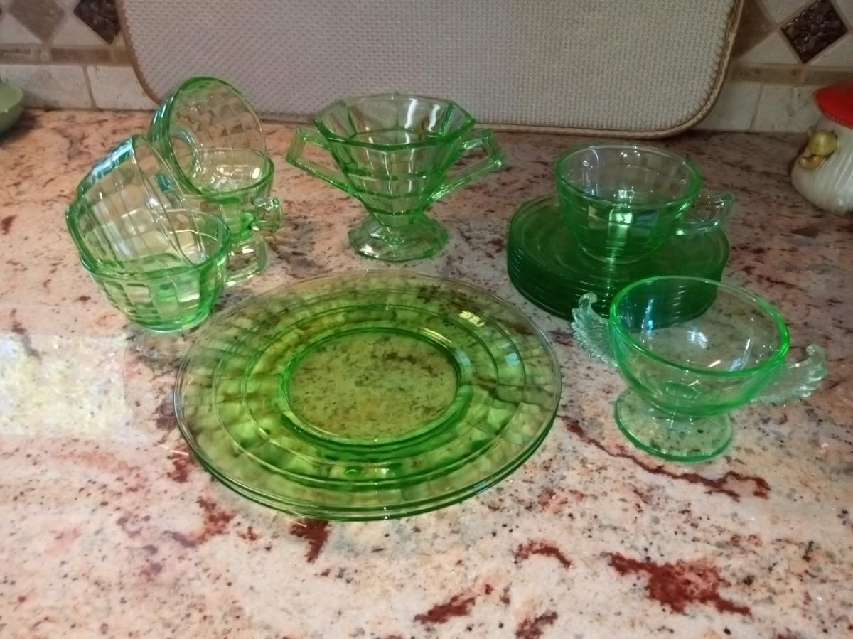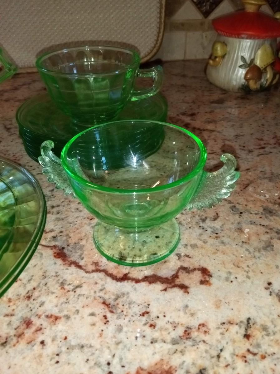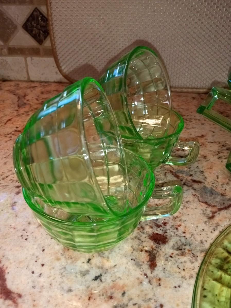 GREEN DEPRESSION GLASS KITCHEN ITEMS