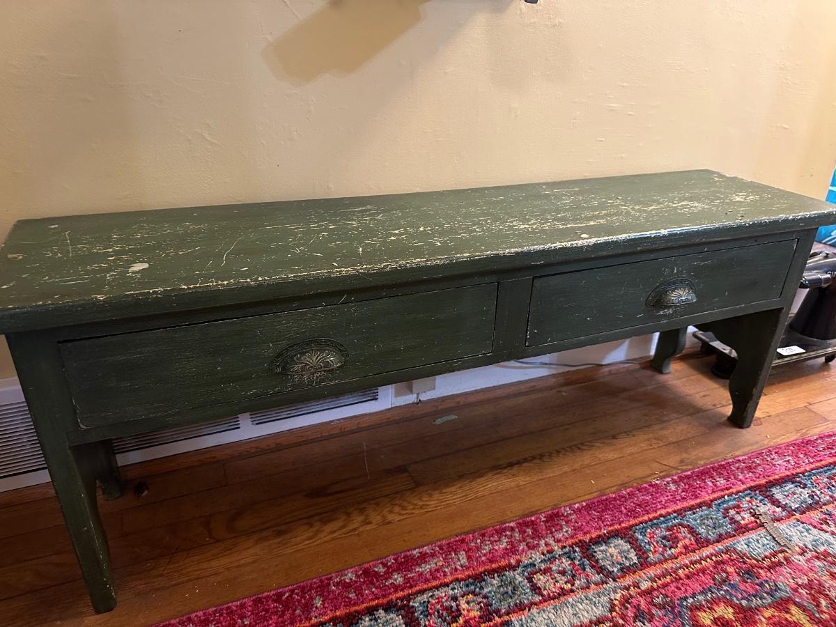GREEN DISTRESSED BENCH