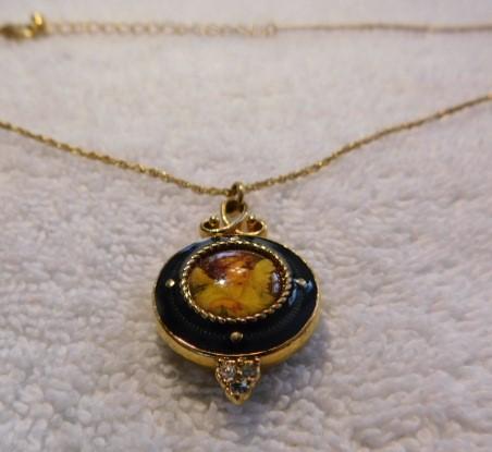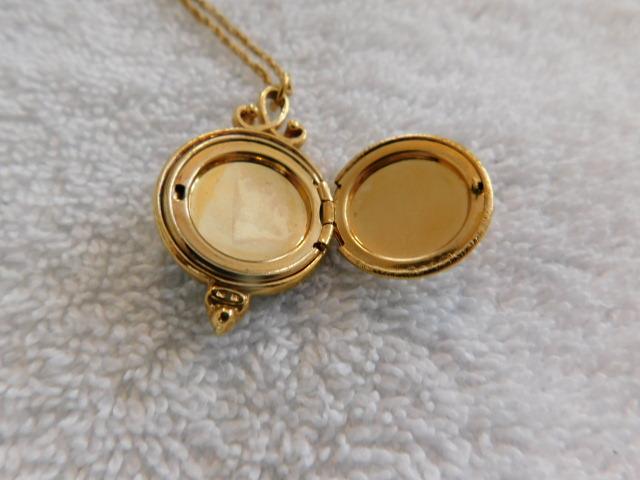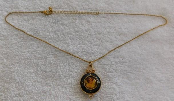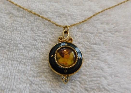 Green Enamel Angel Portrait Locket with Gold Plated 9" (Closed) Chain