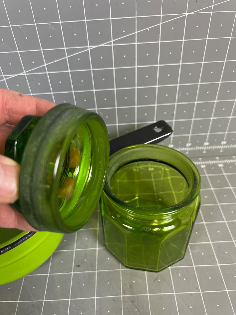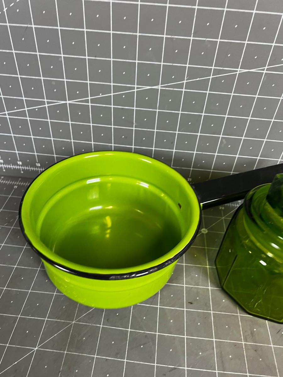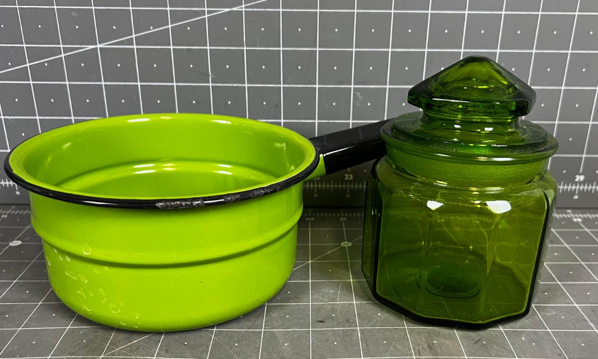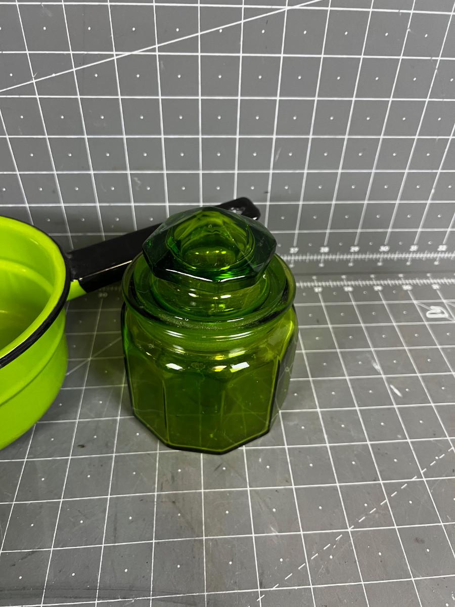 Green Enamel Pot and Green Apothecary Jar with lid
