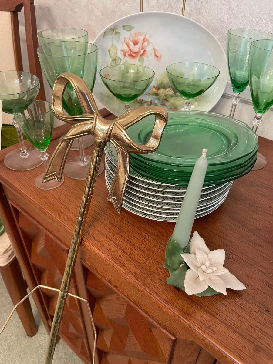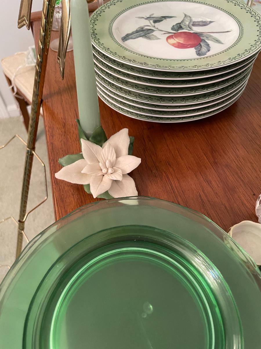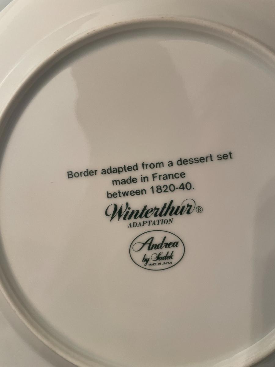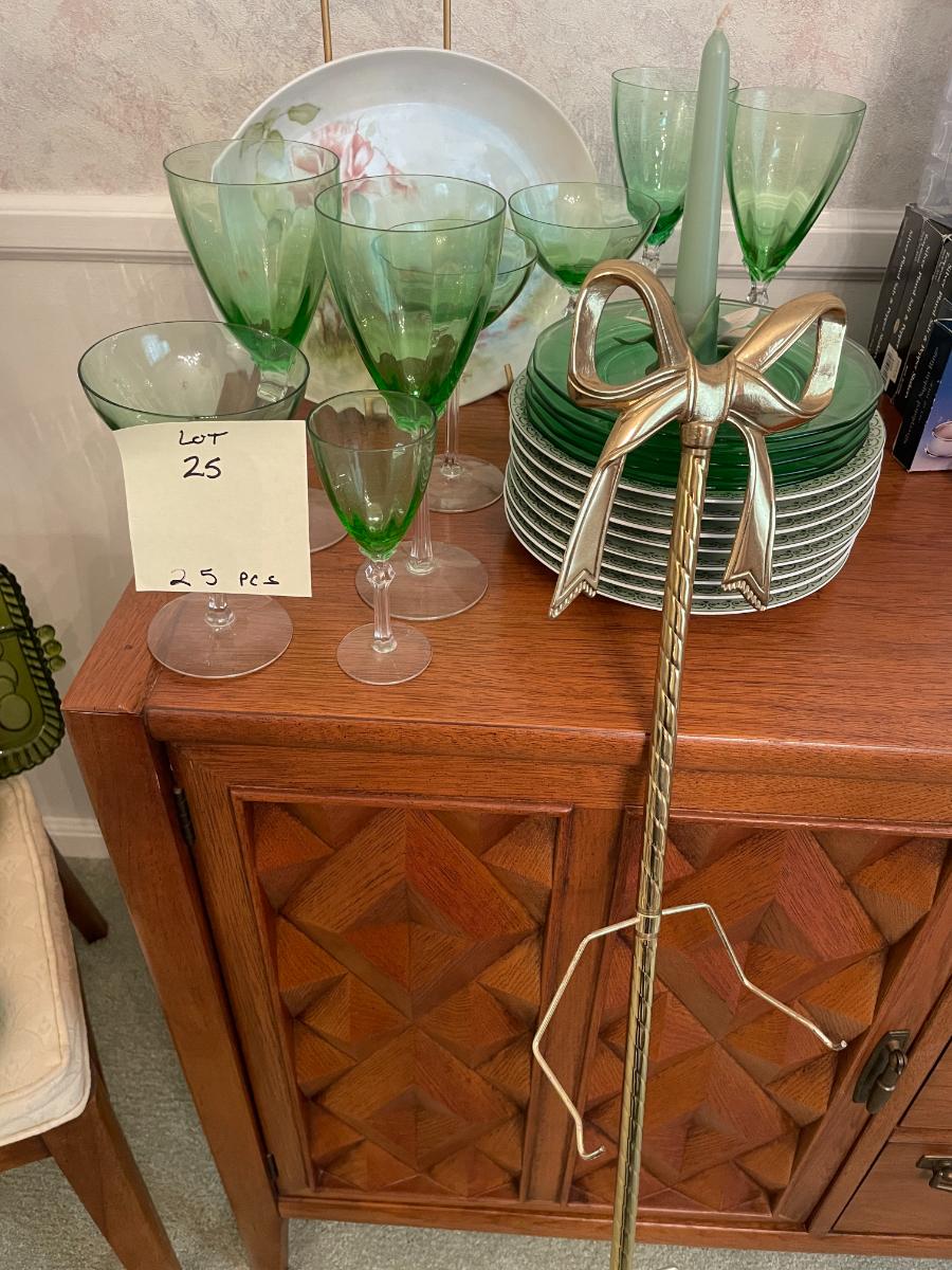 Set of 8 winterthur dessert set, brass plate holder, along with a virety of other items - 25 pieces