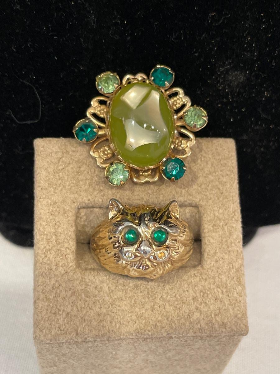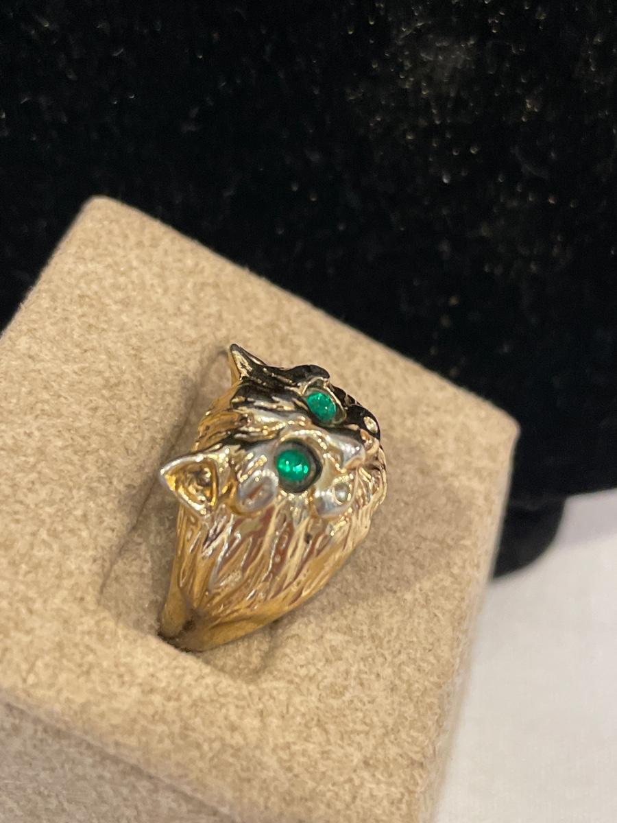 Green eye cat has stamp on it that is partially rubbed off but I think it says 10k GE is size 7