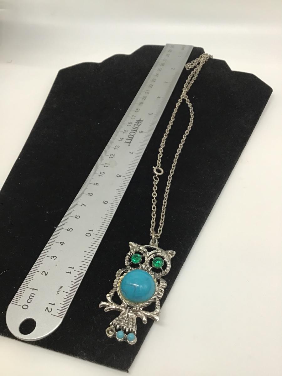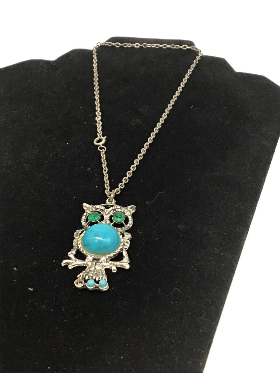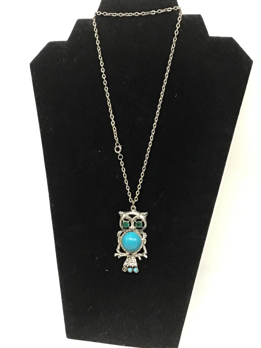 Green eyes and turquoise gem body owl necklace