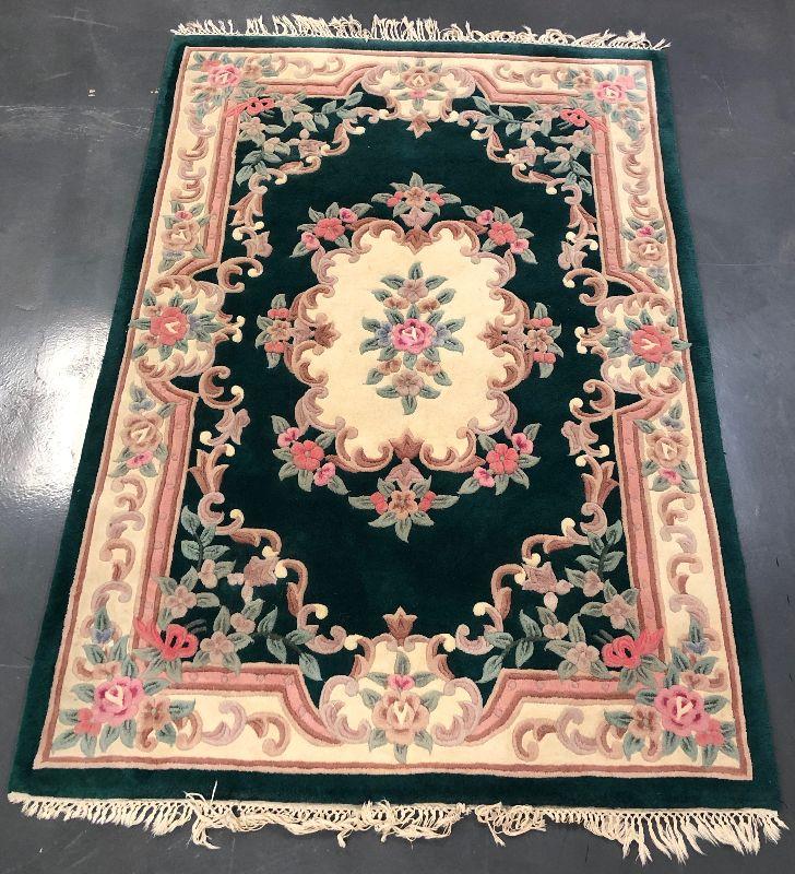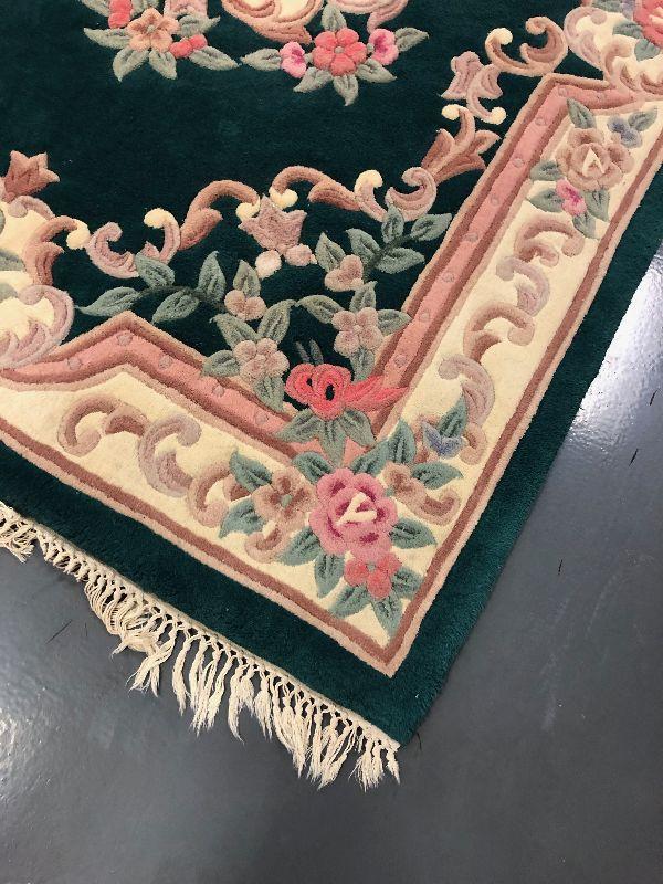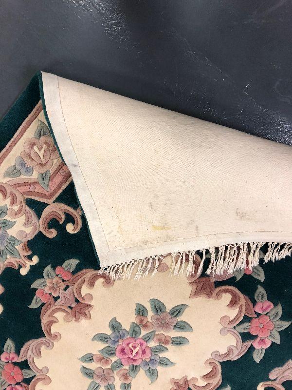 62" x 92" wool handcrafted some wear - Non -slip pad included