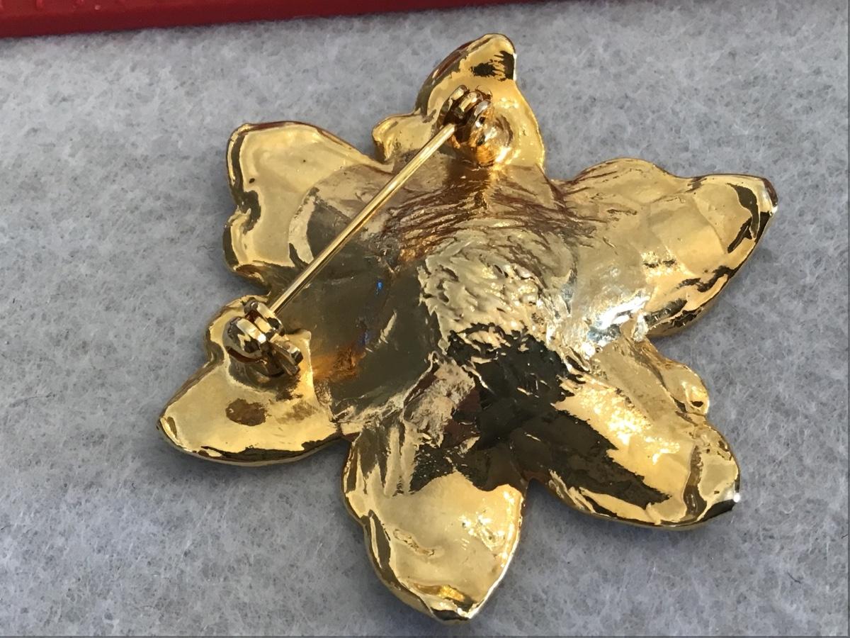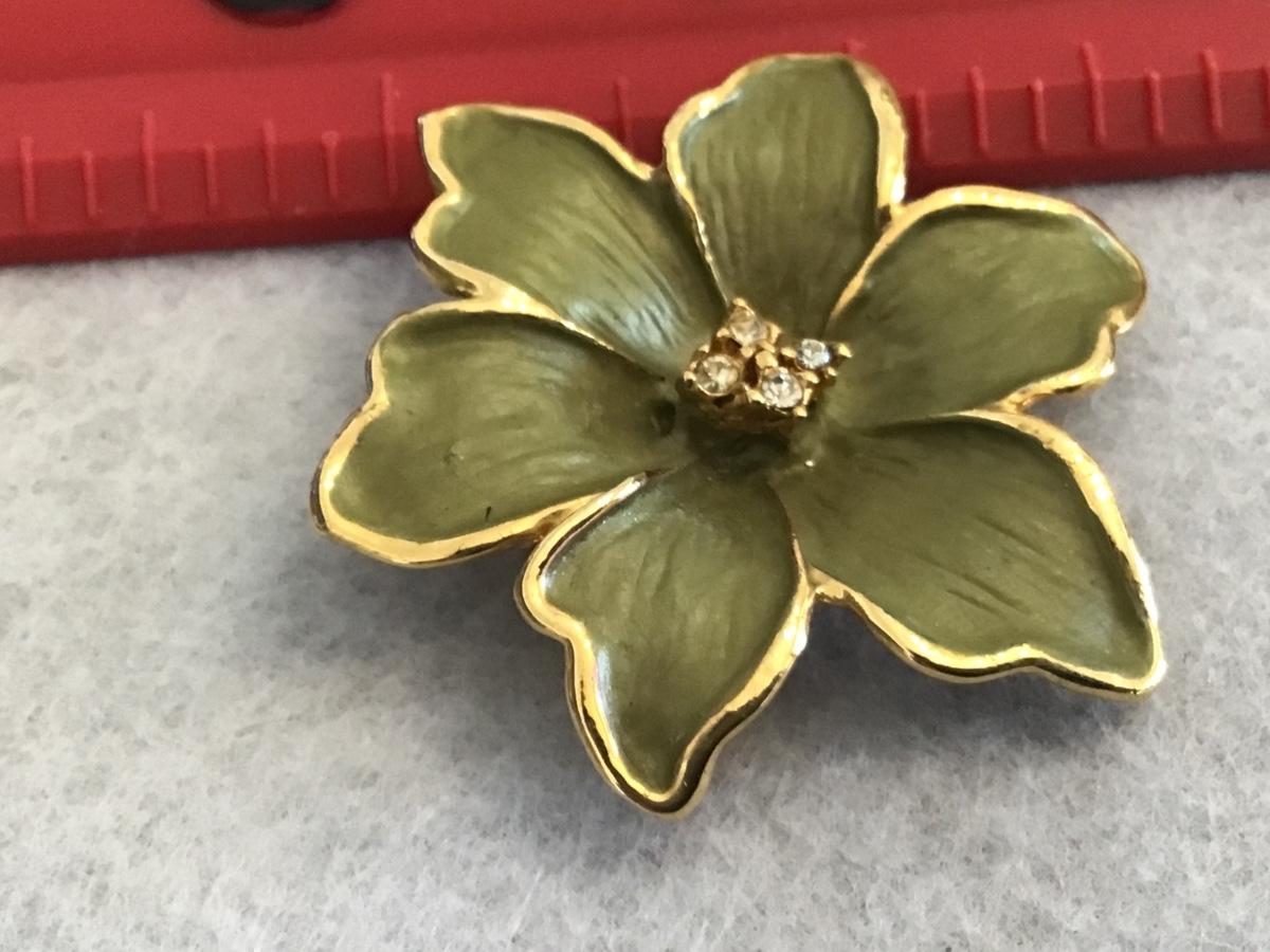 Green Flower Brooch Gold Tone