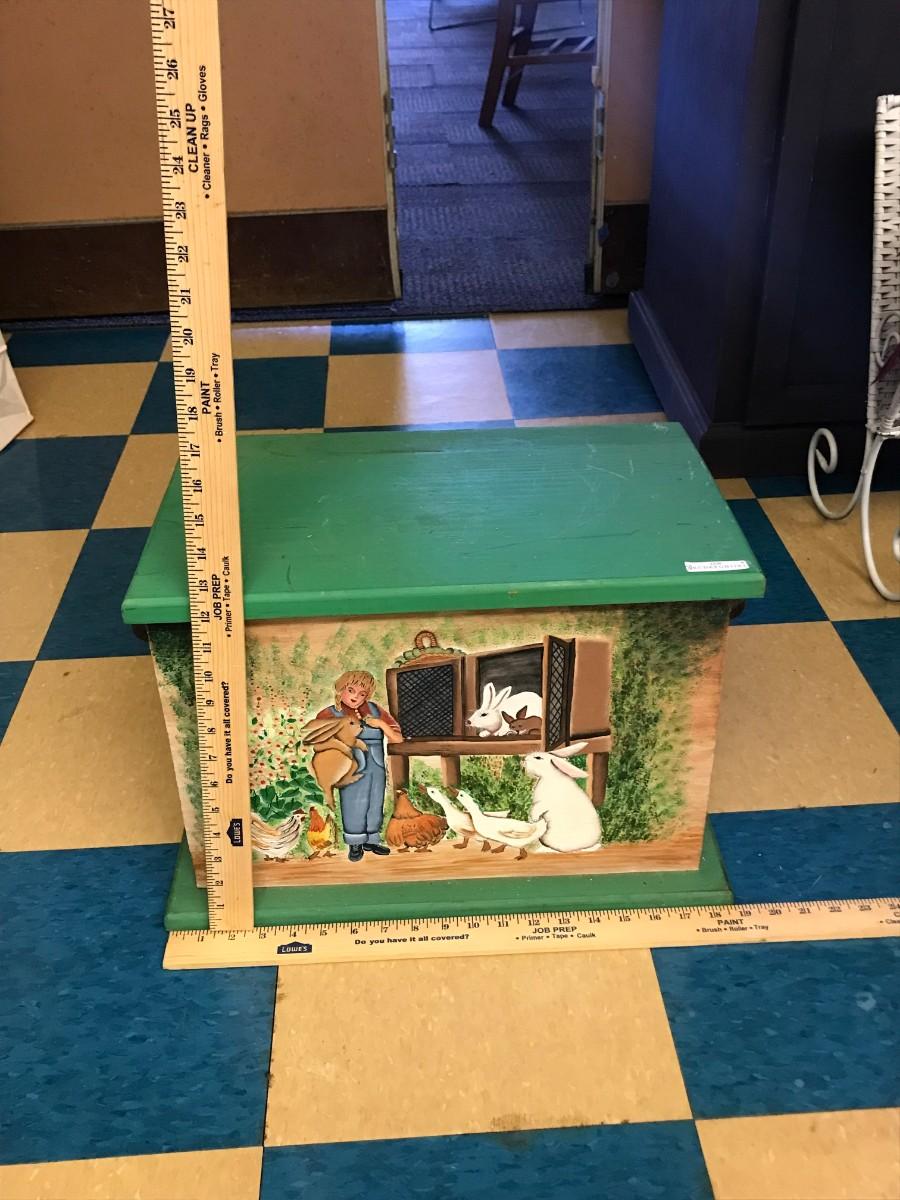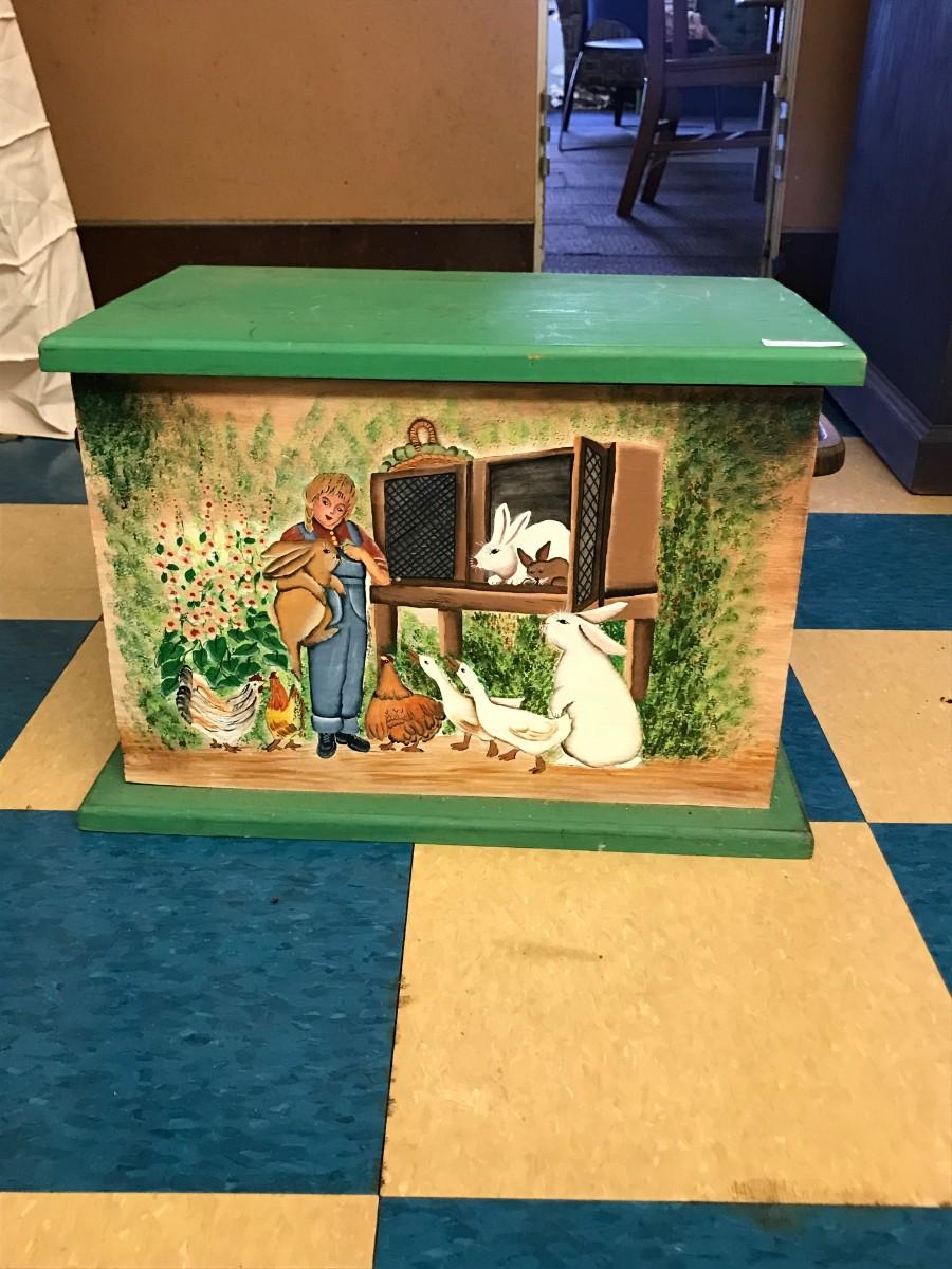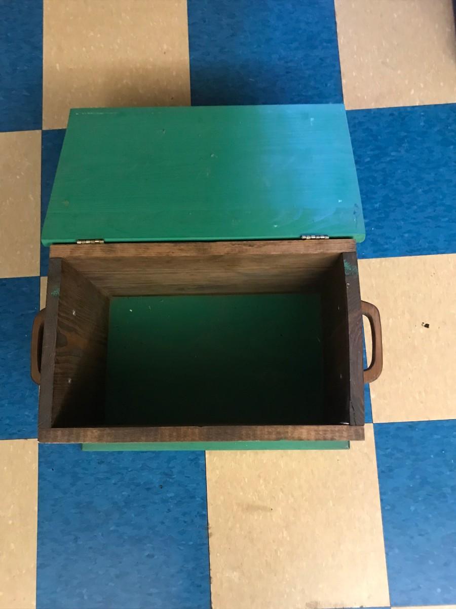 wood box storage: green, functional, wooden, box for storage, hand painted, hinged lid ;