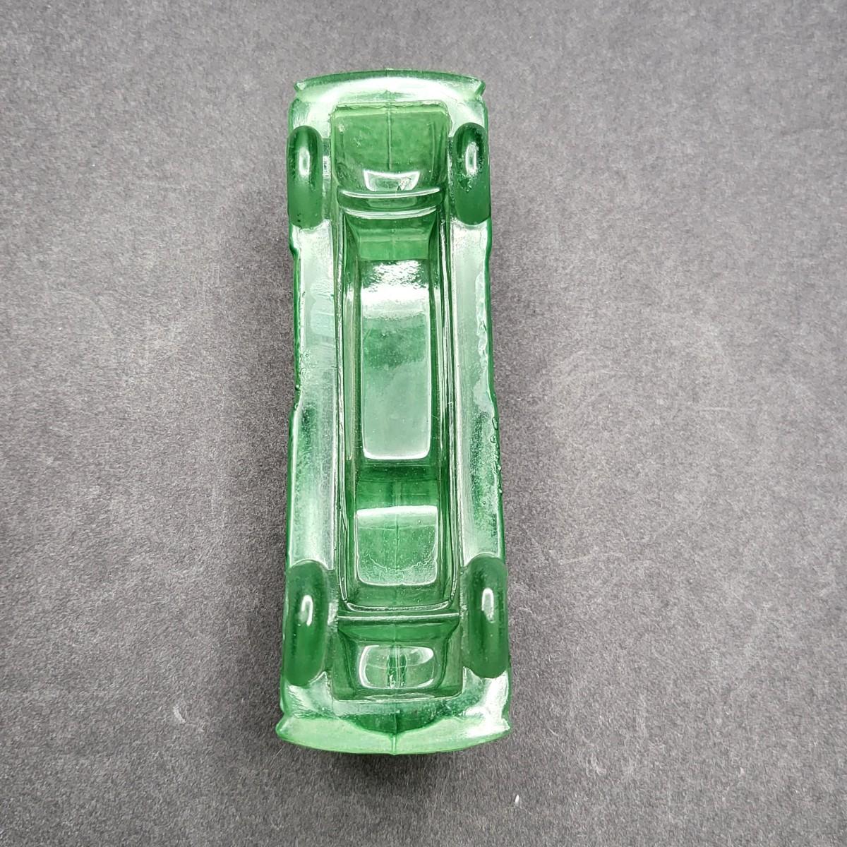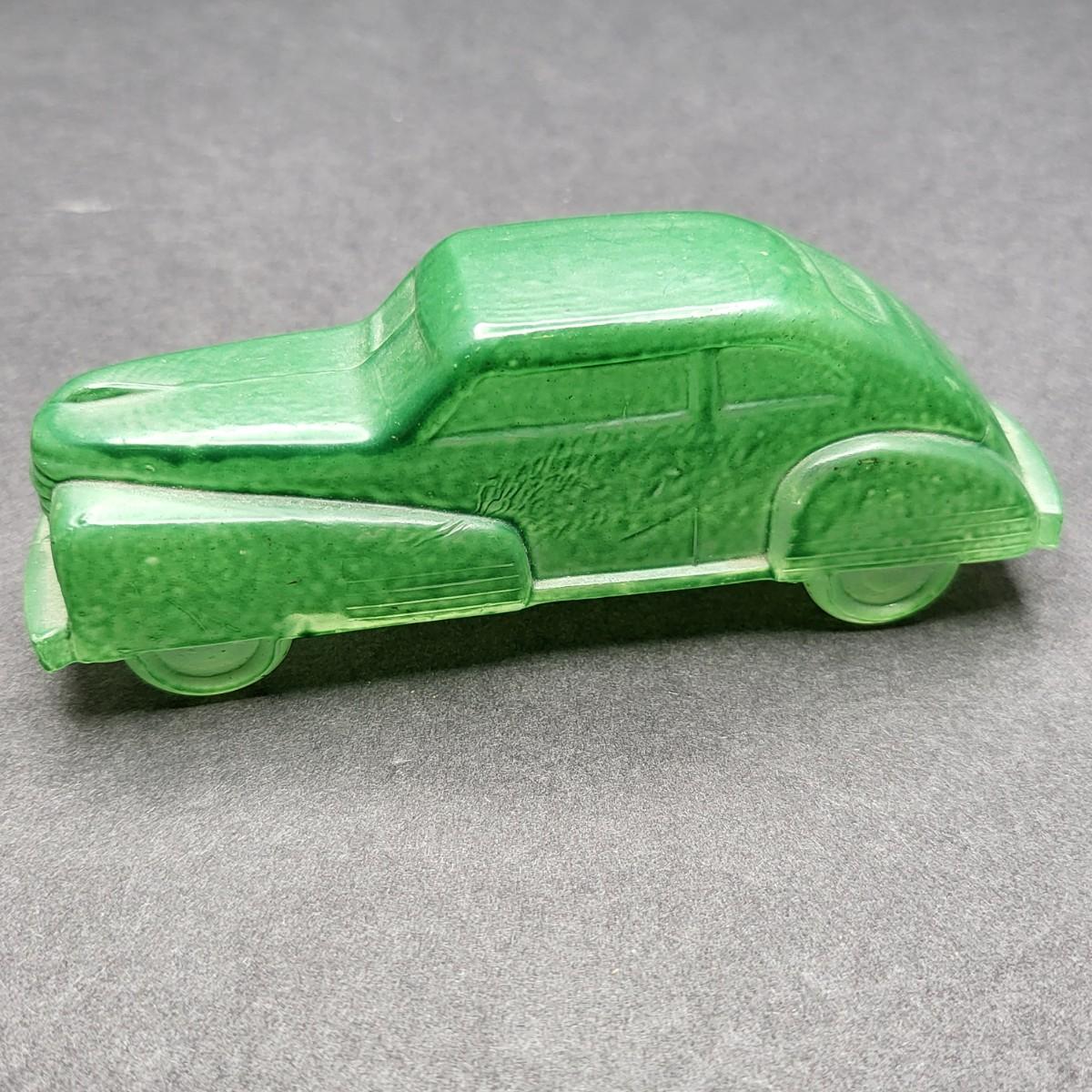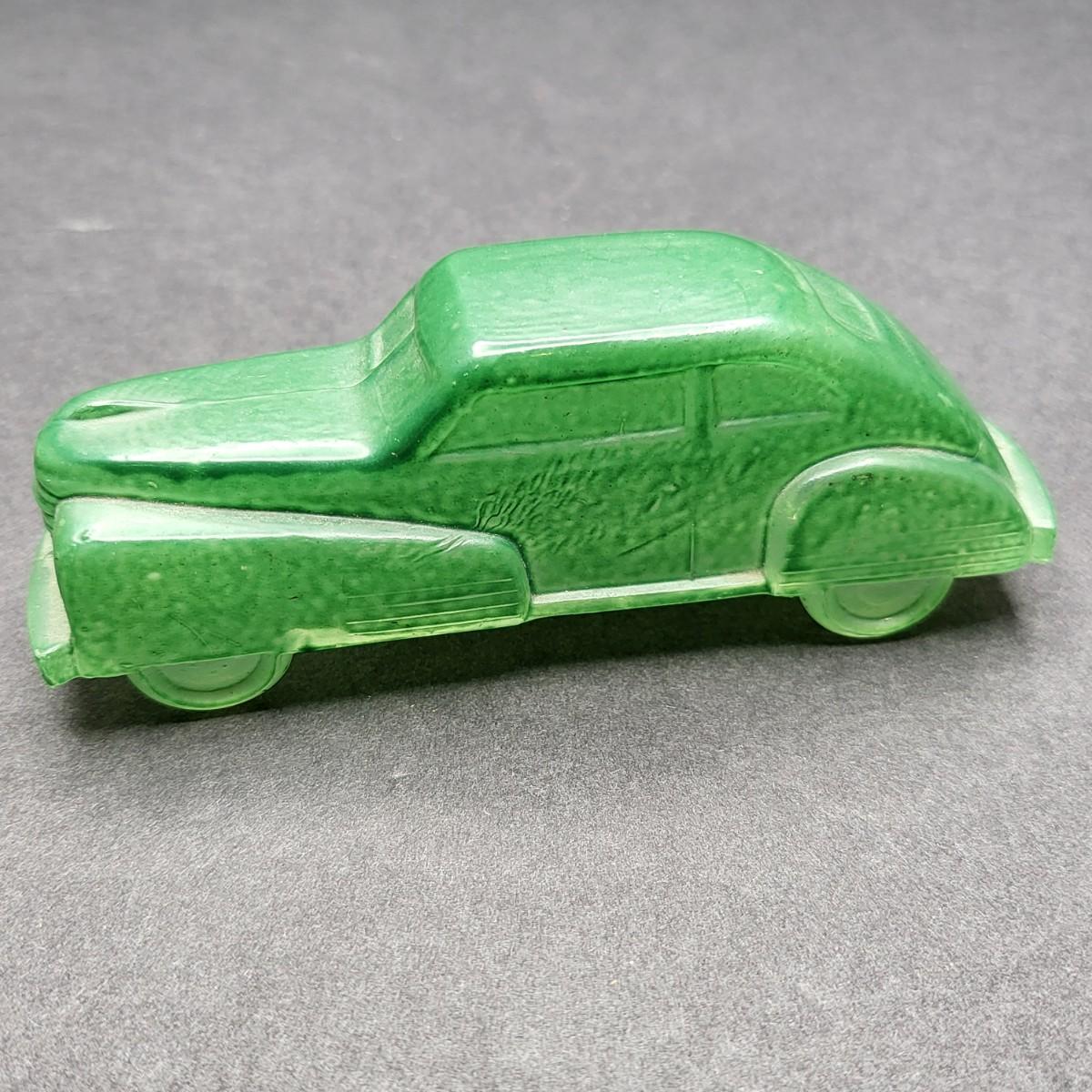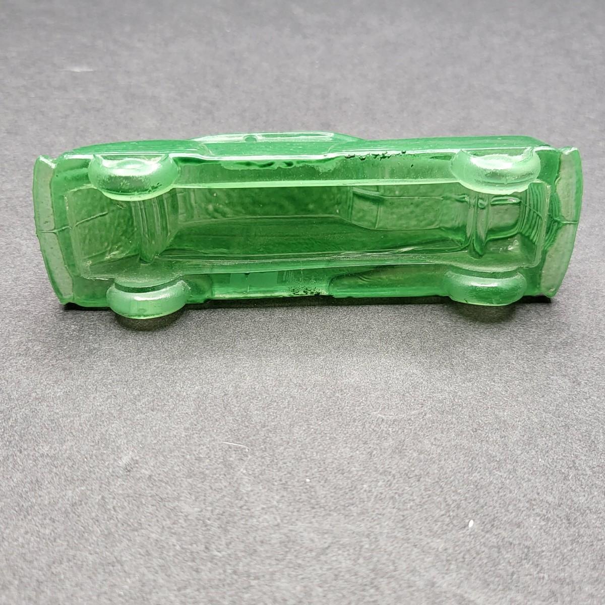 Vintage 4.5" L x 1.25" W green glass old model car.