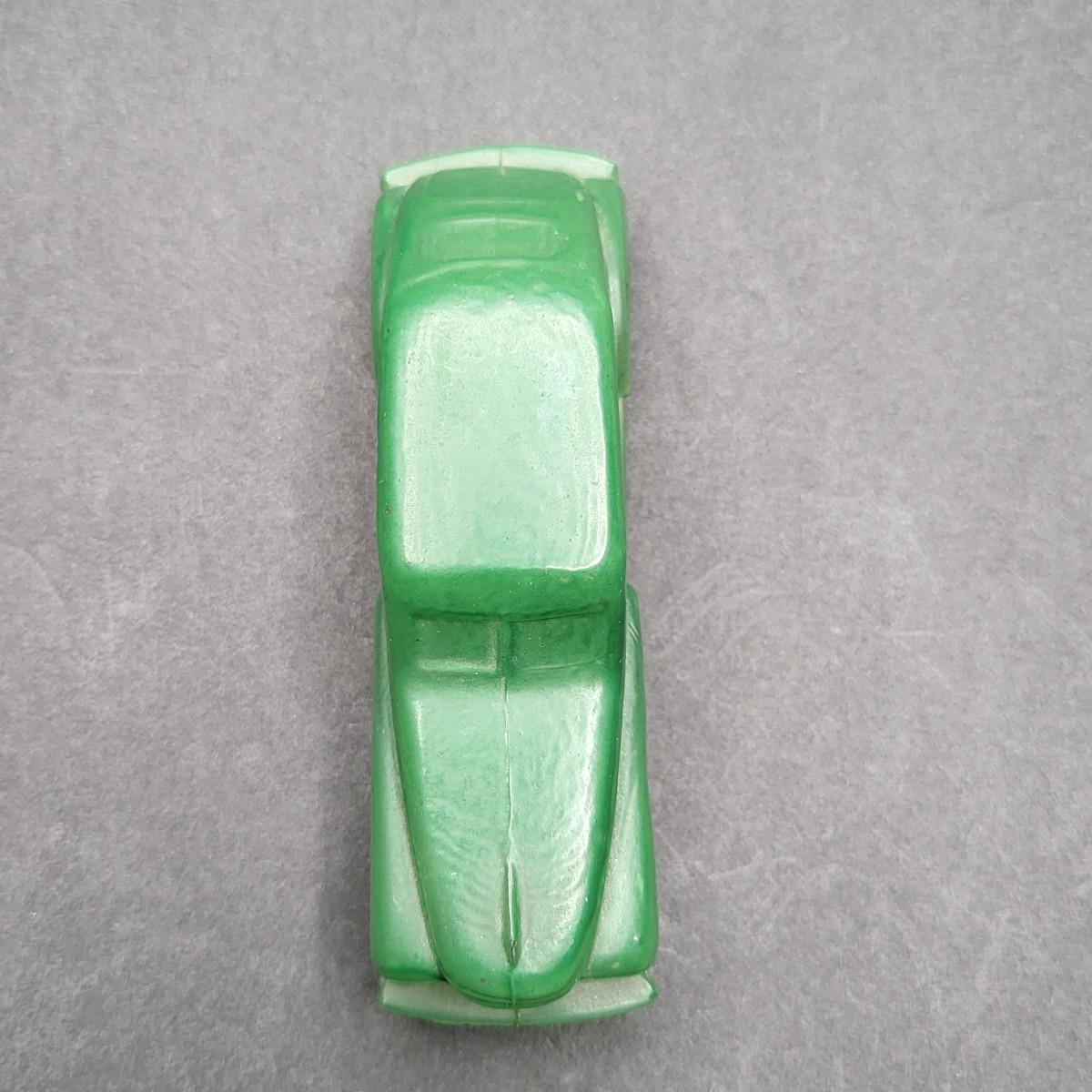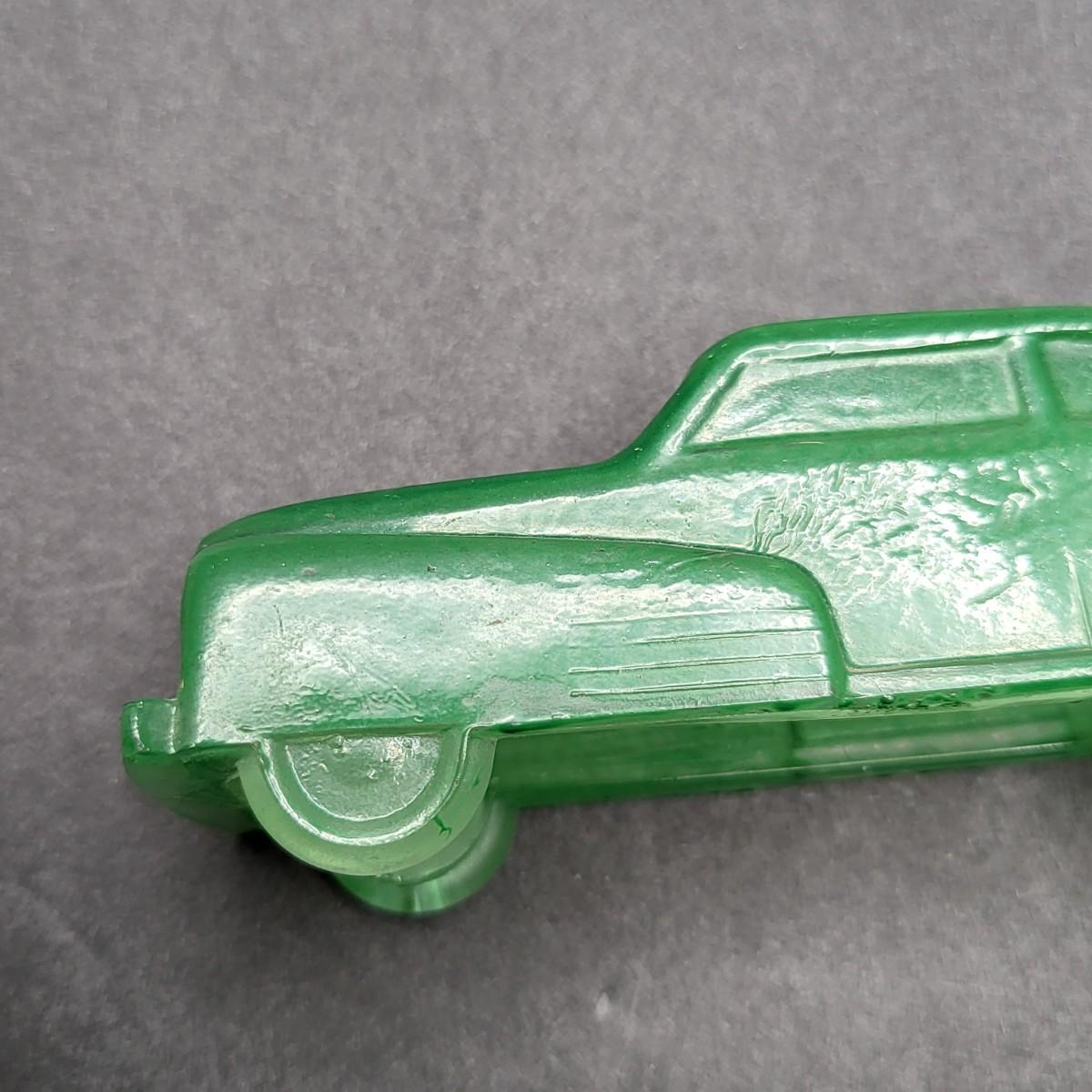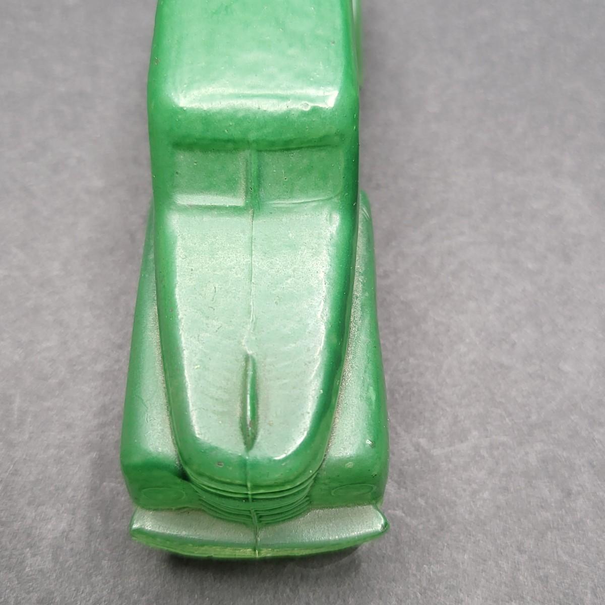 Vintage 4.5" L x 1.25" W green glass old model car.